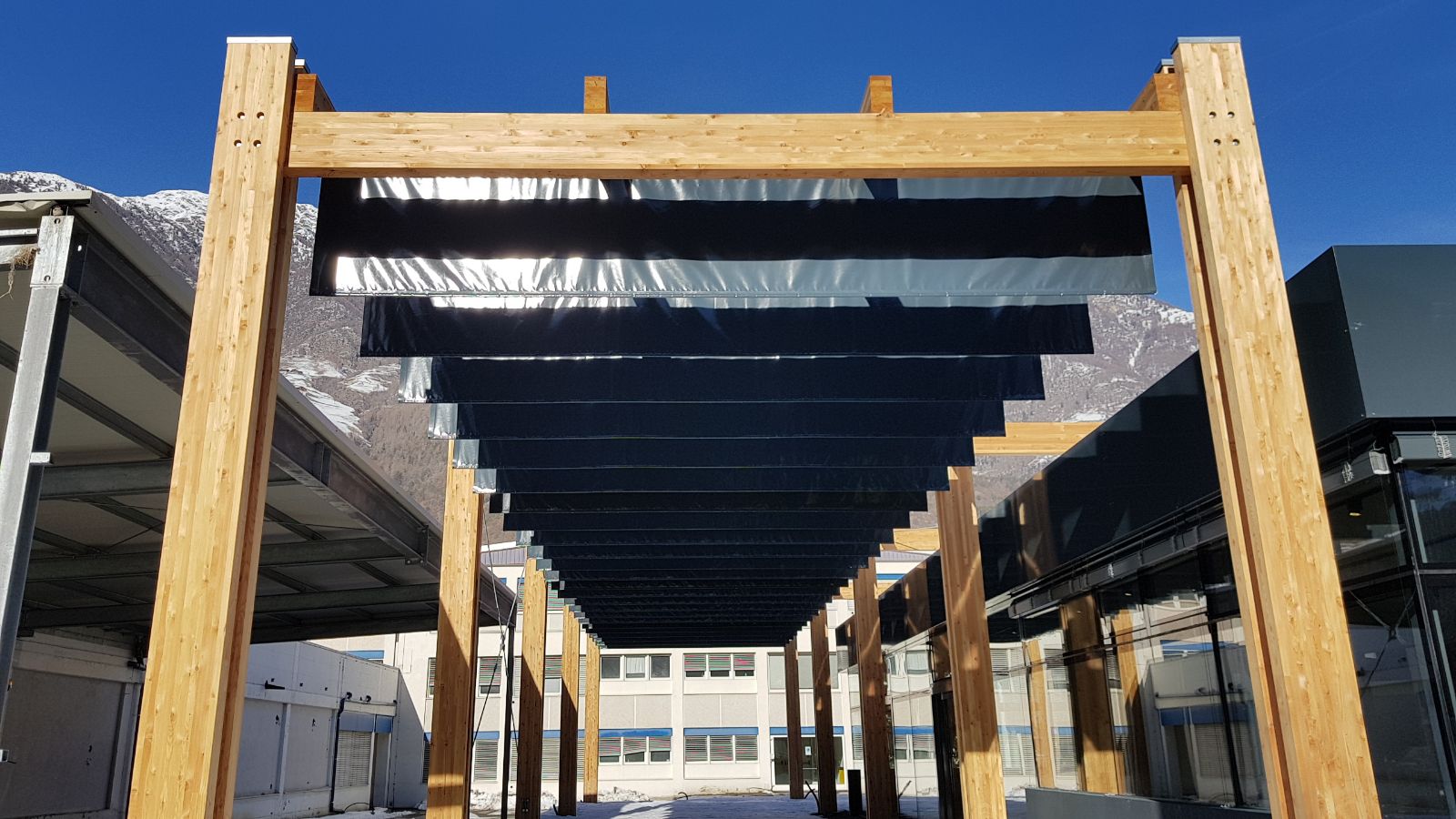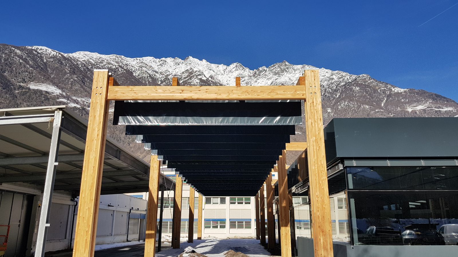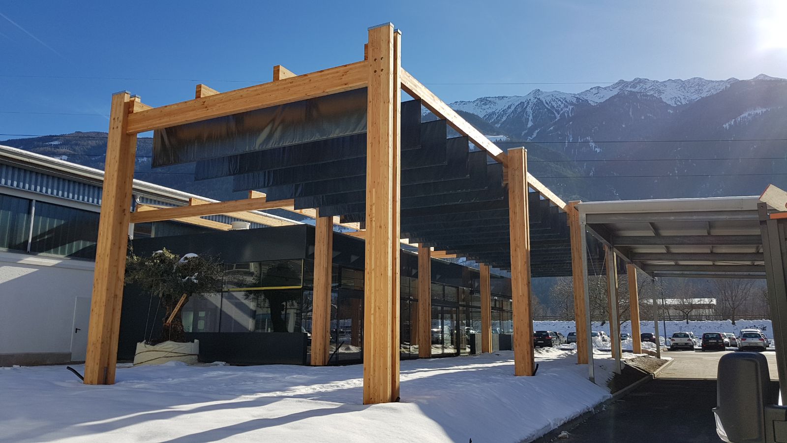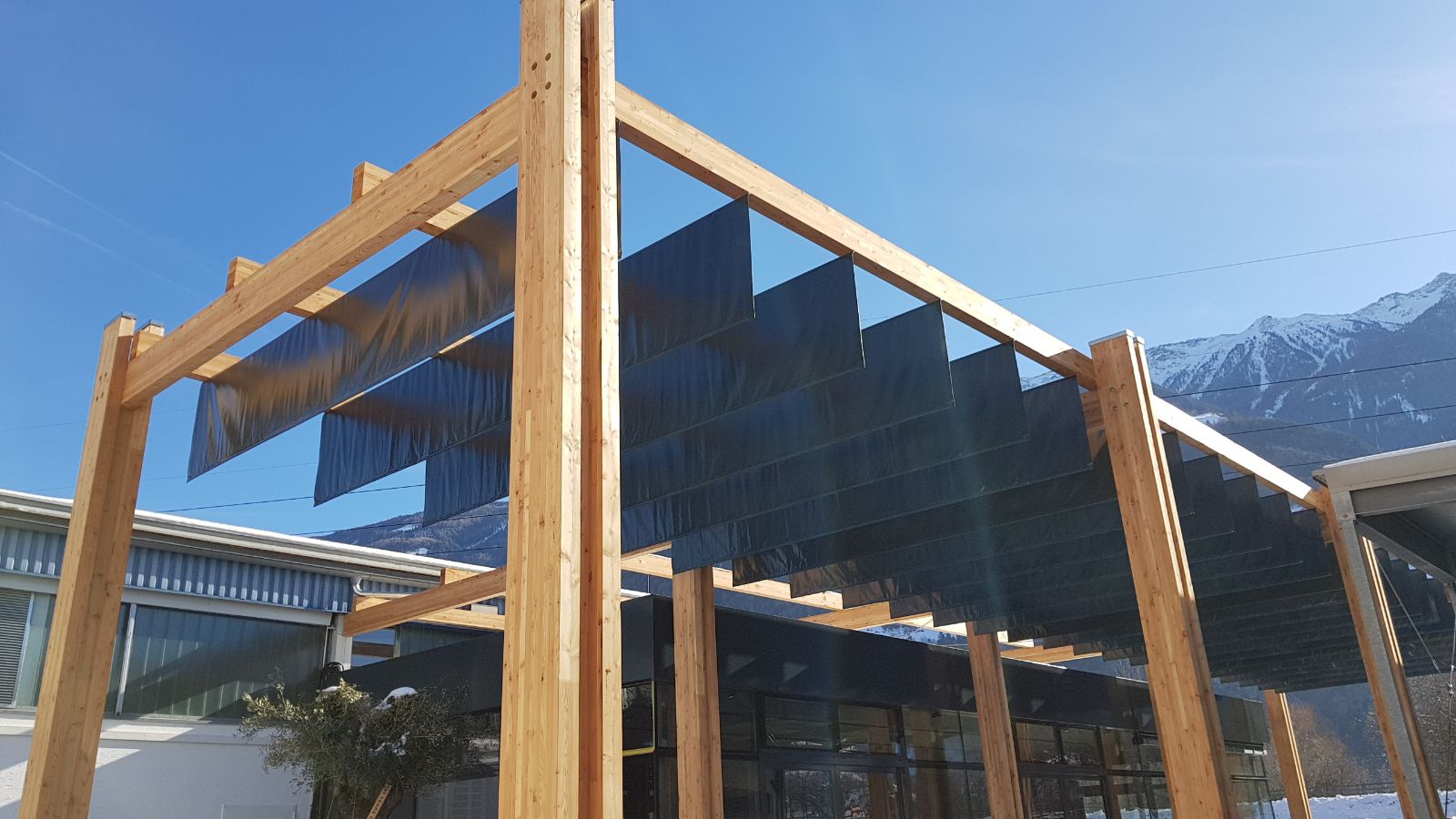 Ein vertikaler Schattenspender wurde für die Firma Schweitzer Projekts in Naturns umgesetzt.