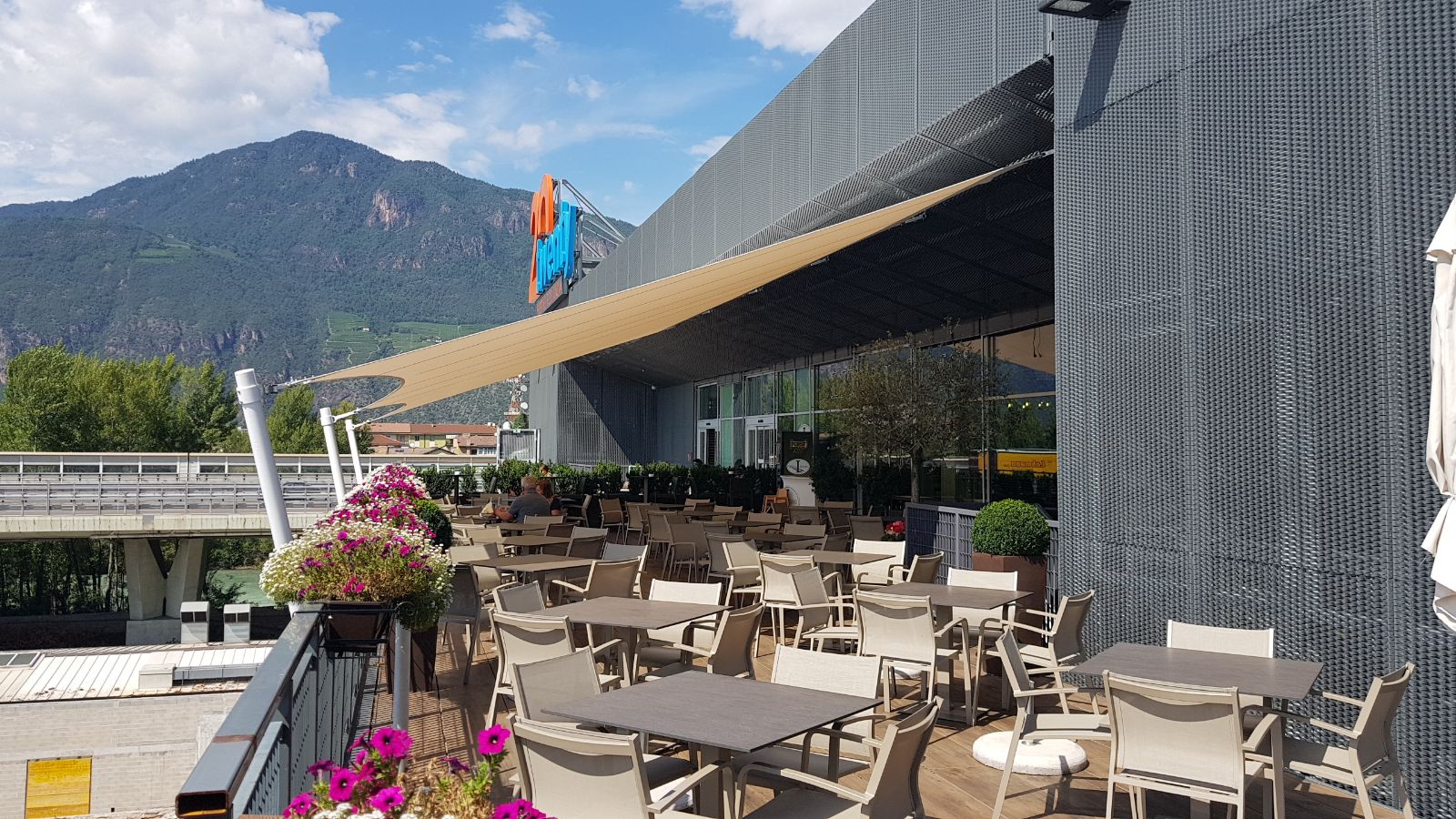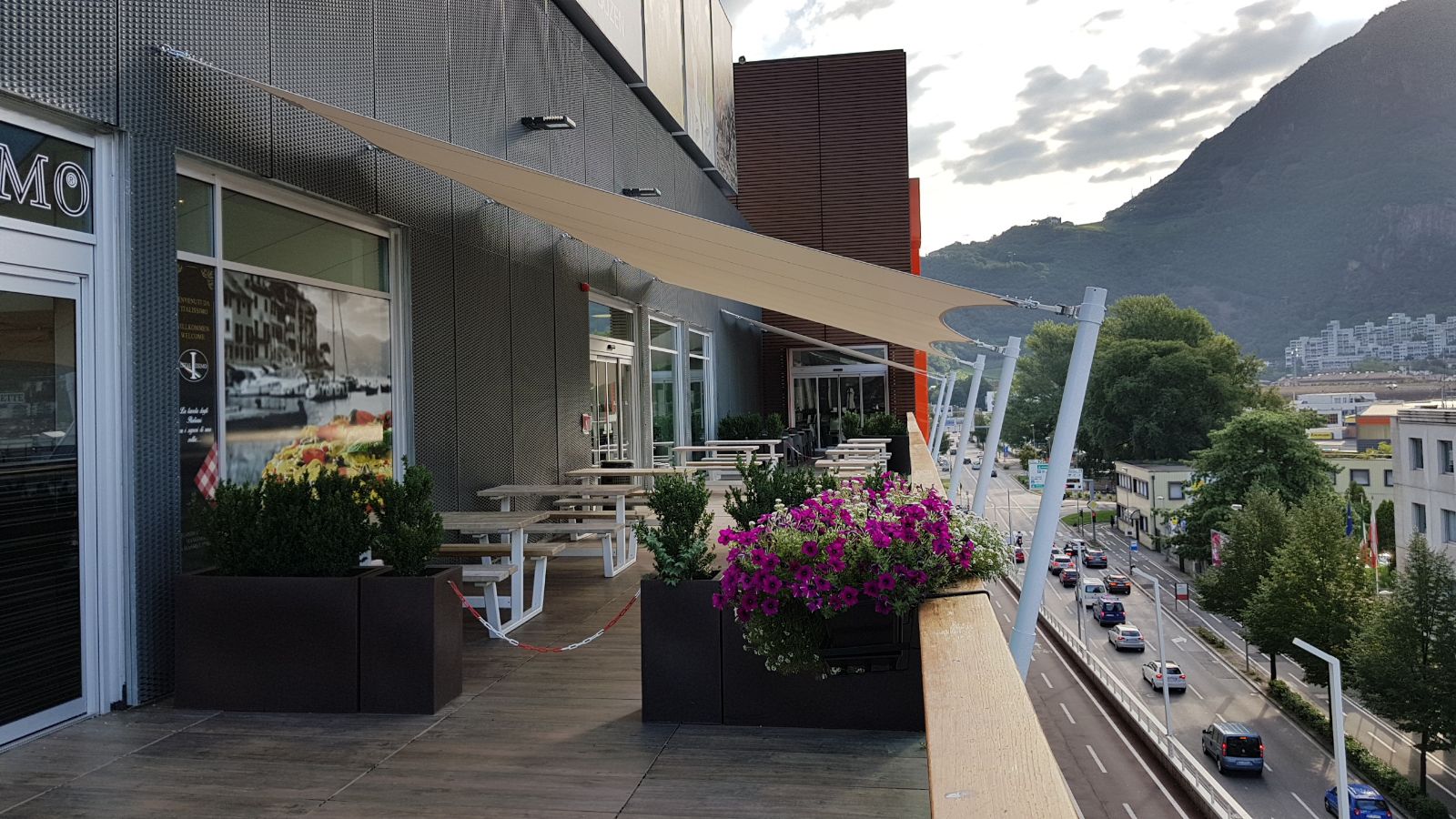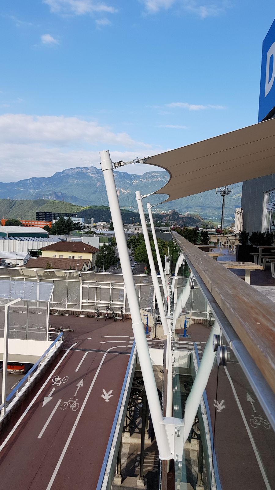 Im Einkaufszentrum "Twenty" in Bozen wurde ein Sonnenschutz im Form eines Segels "für das ganze Jahr" montiert.