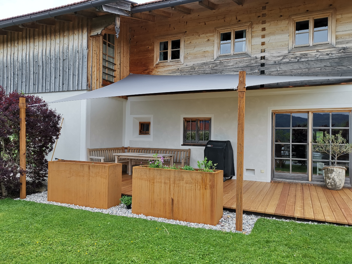 Stahl-Pergola mit Rollsegel; Brixen Südtirol , 2024Stahlrahmen für Autoüberdachung, Privat, Gardasee, 2023Pergola-Laube in Stahl mit Gitter, Bozen, 2023Asymmetrische Stahlkonstruktion für Terrassenbeschattung, Enneberg, Südtirol, 2022Saisonsegel & Stahlkonstruktion auf Dachterrasse, Kaltern, 2021Saisonsegel & Stahlkonstruktion auf Dachterrasse, Kaltern, 2021Stahlkonstruktion auf Dachterrasse mit Segel, Kaltern, 2021Kran in der Innenstadt, Bozen, 2021Pergola mit Verglasung, Raubling, 2021Säule und Hochbeet aus Cortenstahl, Hausham, Bayern, 2019Stahlkonstruktion in Kombination mit Segel, Innenhof Raiffeisenkasse Sterzing, Südtriol, 2017