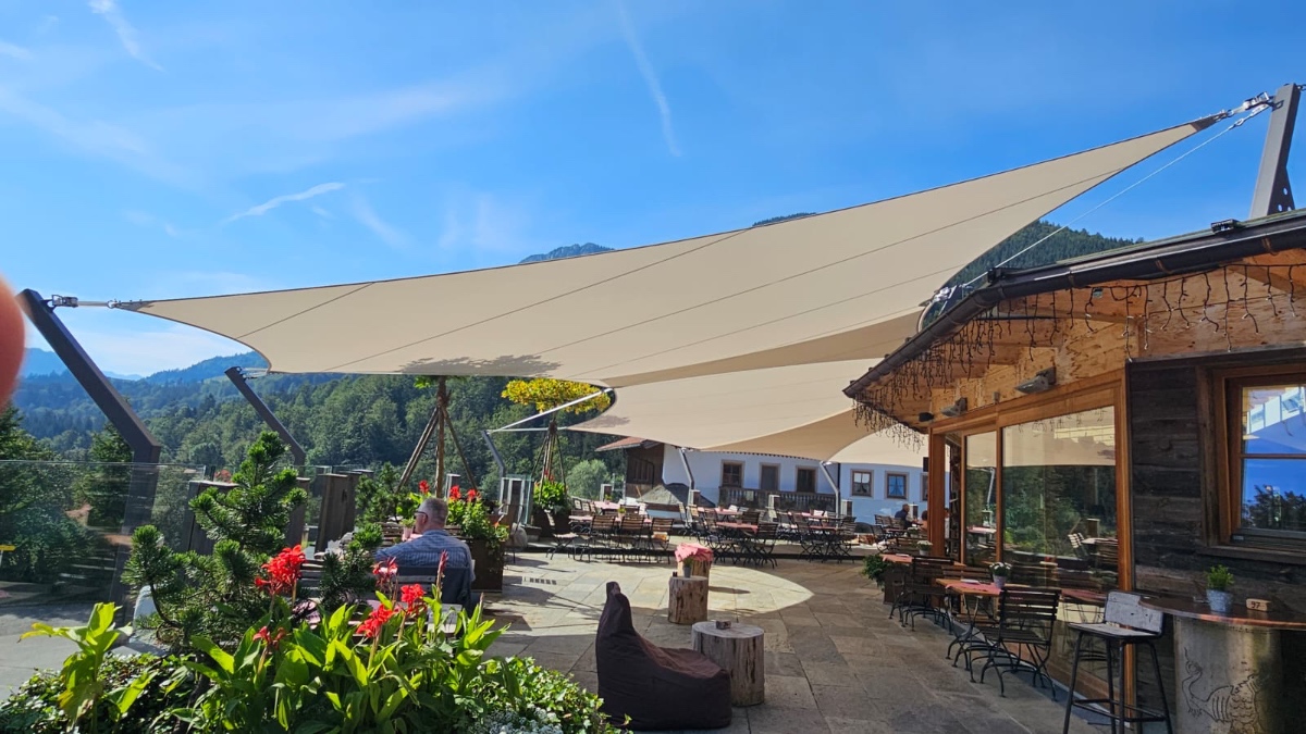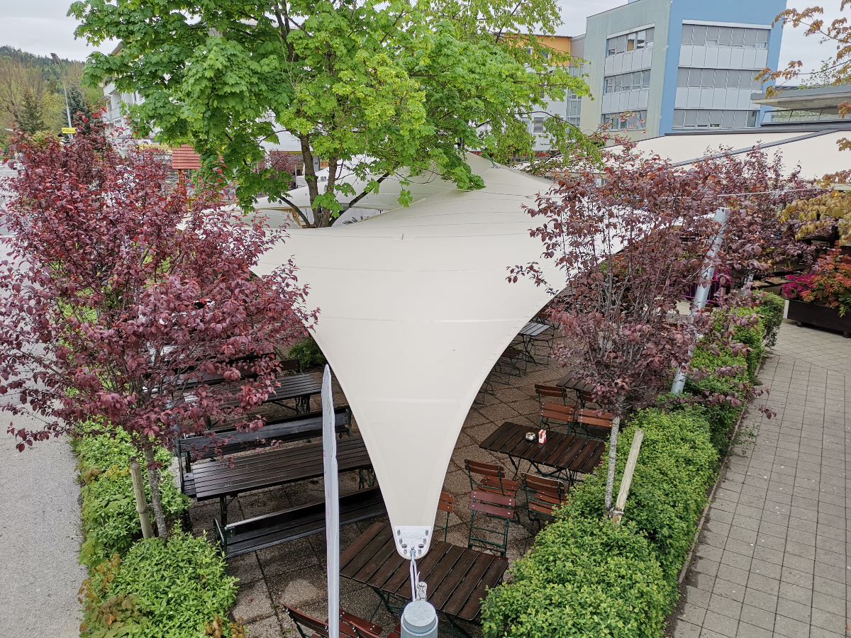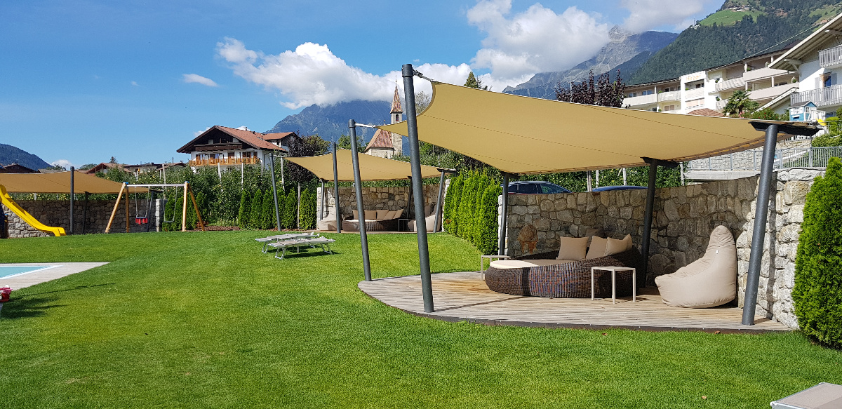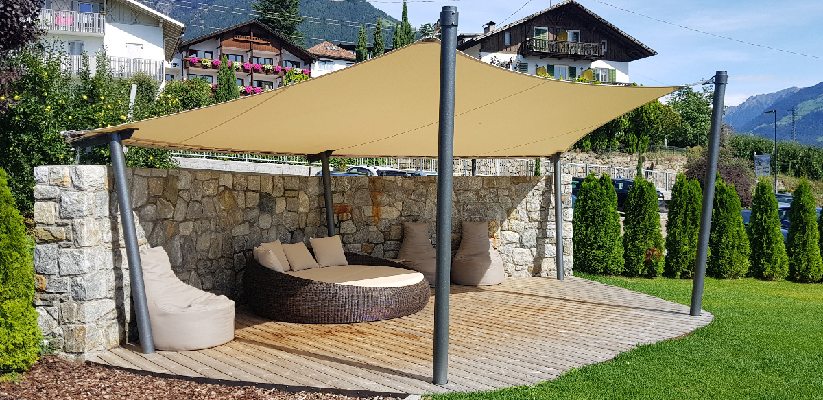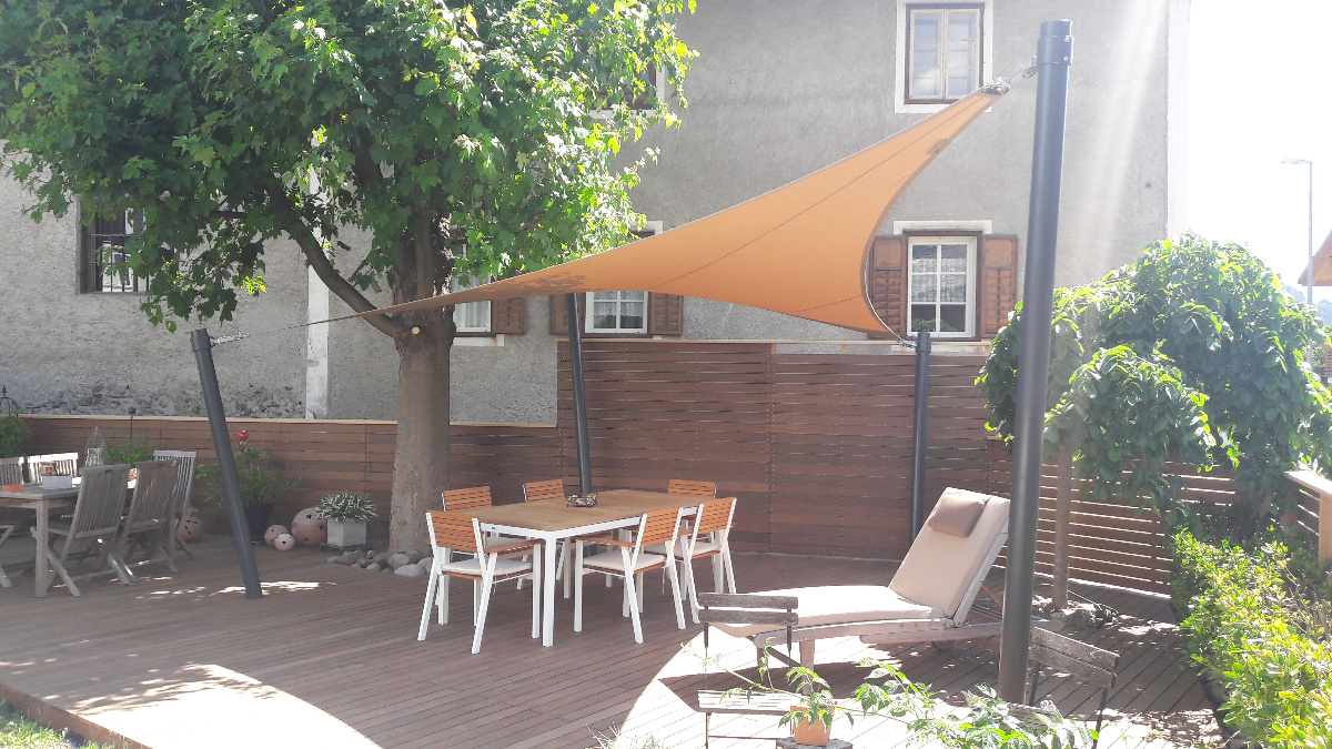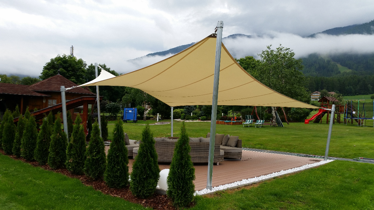 Von Beginn des Frühlings bis in den späten Herbst hinein sorgen die saisonale Sonnensegel für einen stabilen Sonnen- & Wetterschutz.