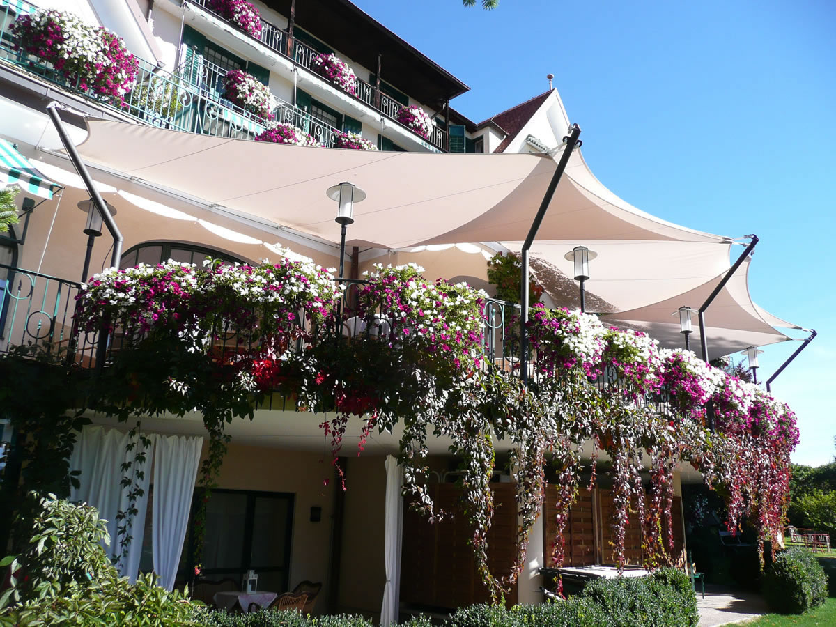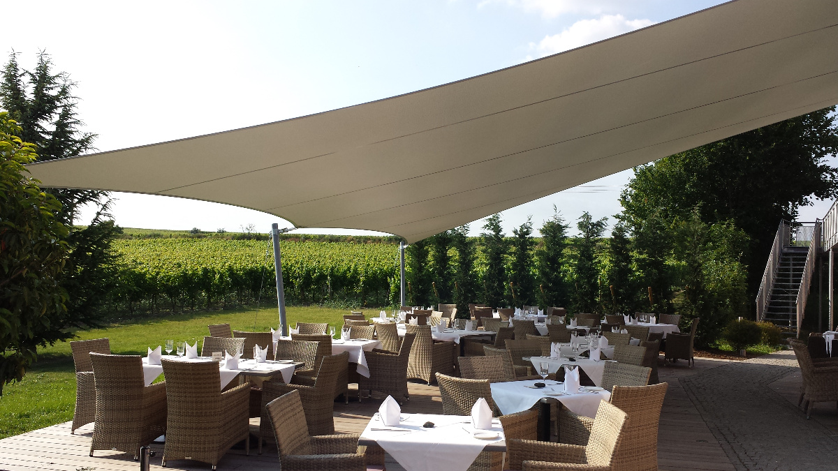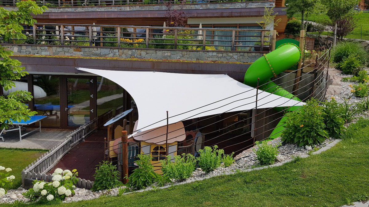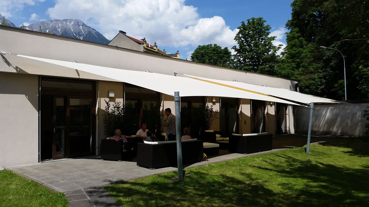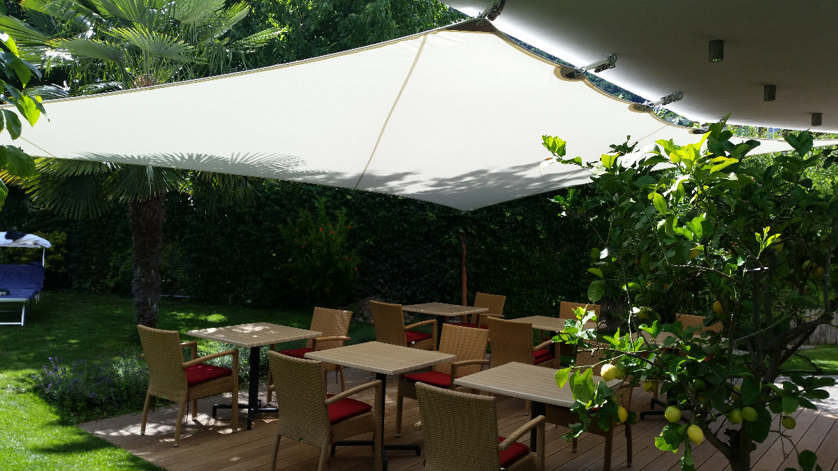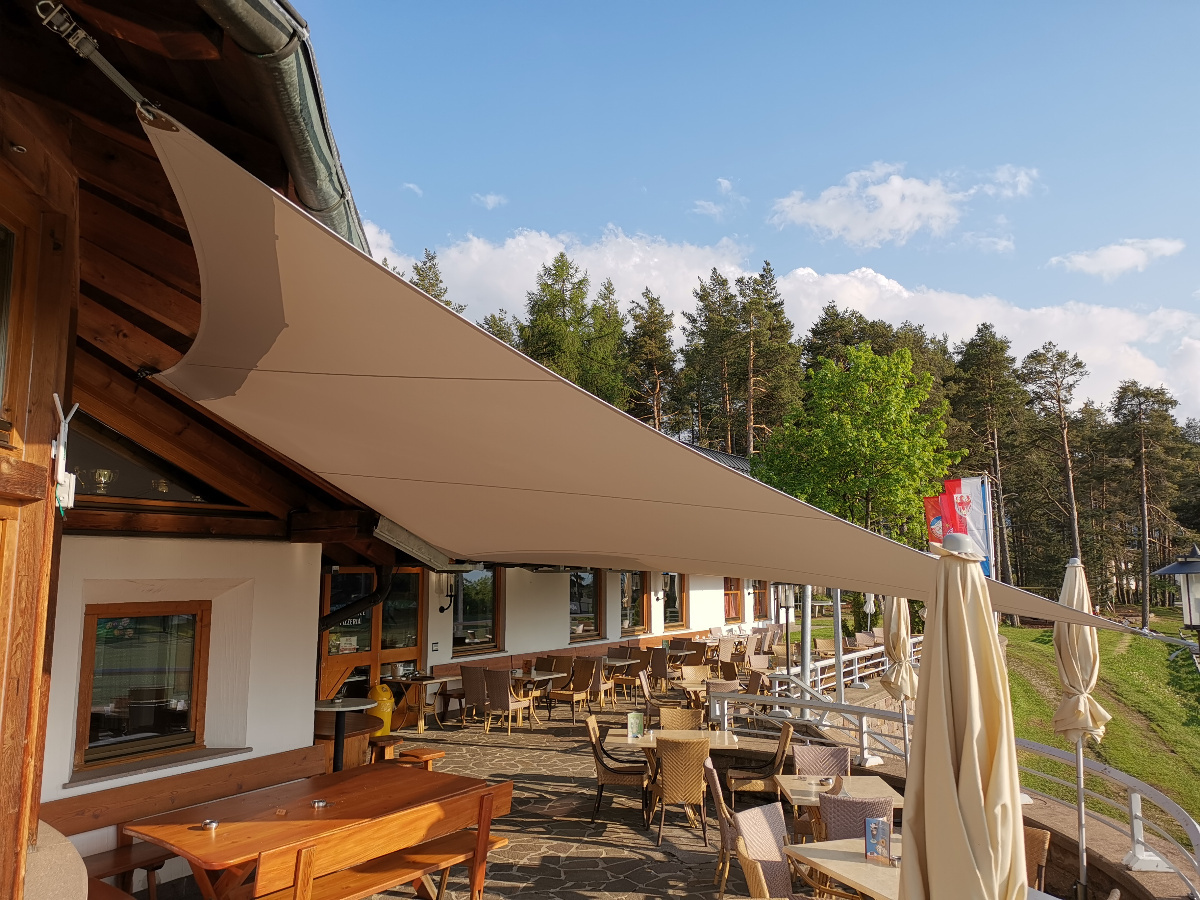 Von Beginn des Frühlings bis in den späten Herbst hinein sorgen die saisonale Sonnensegel für einen stabilen Sonnen- & Wetterschutz.