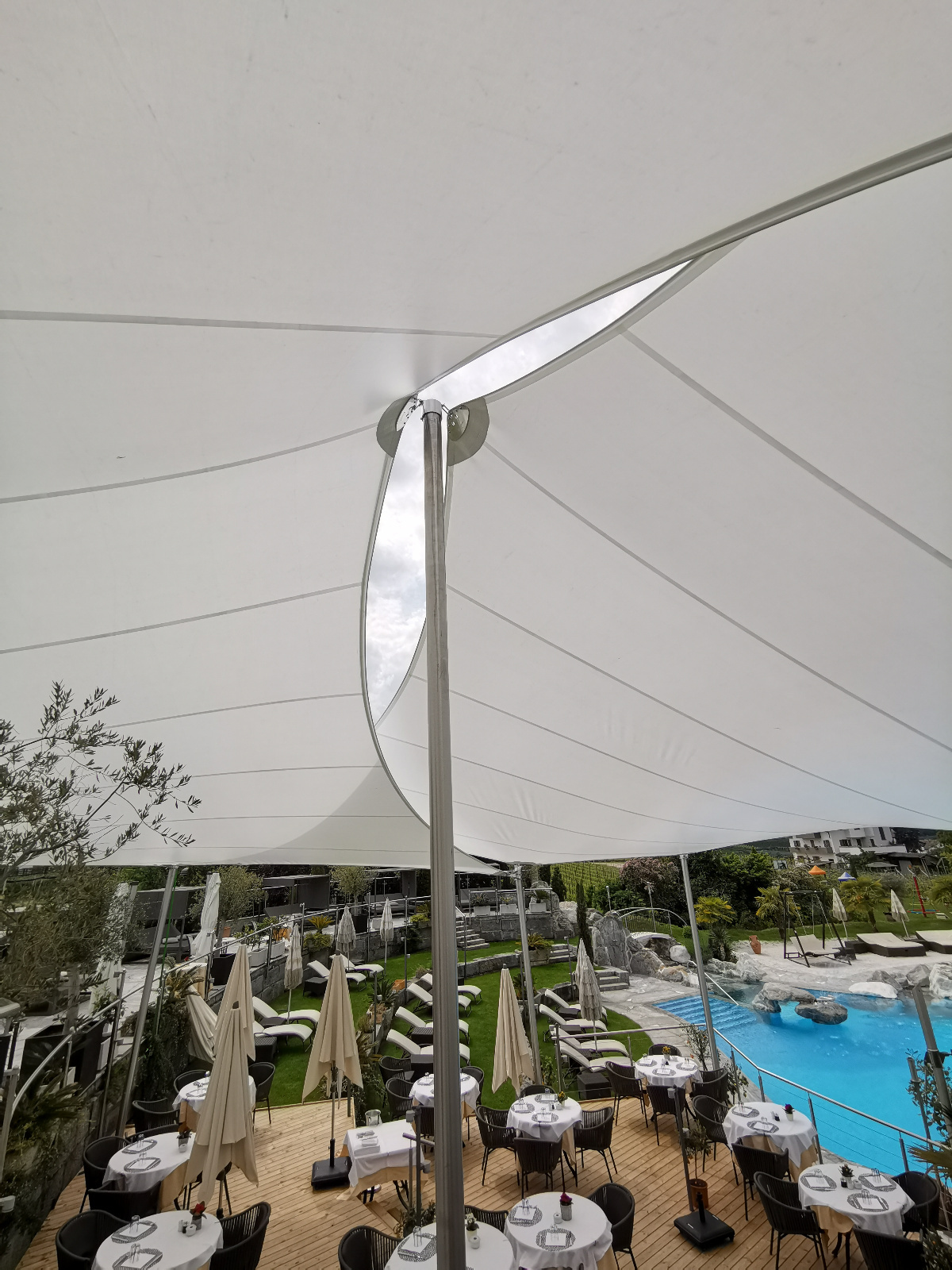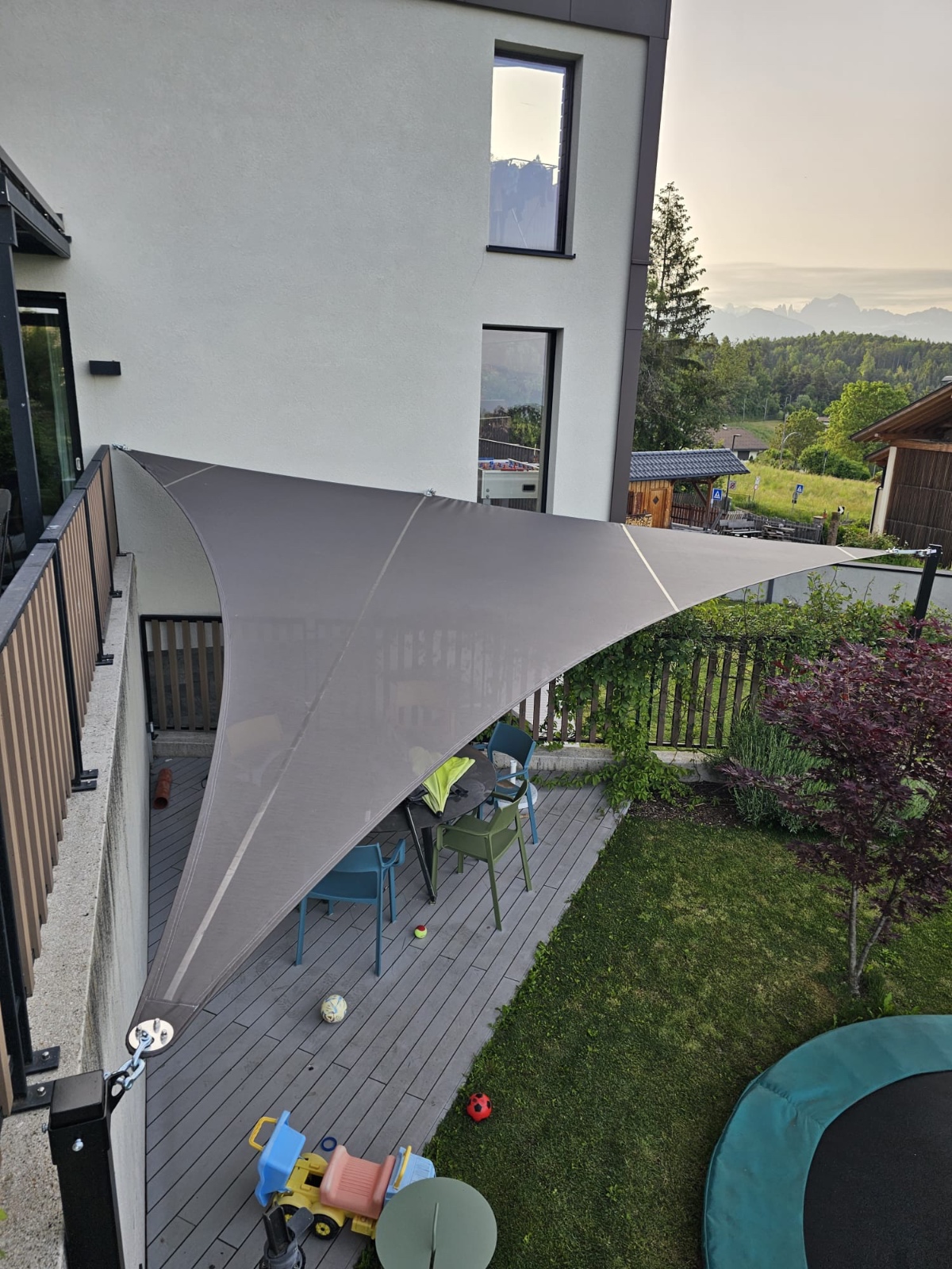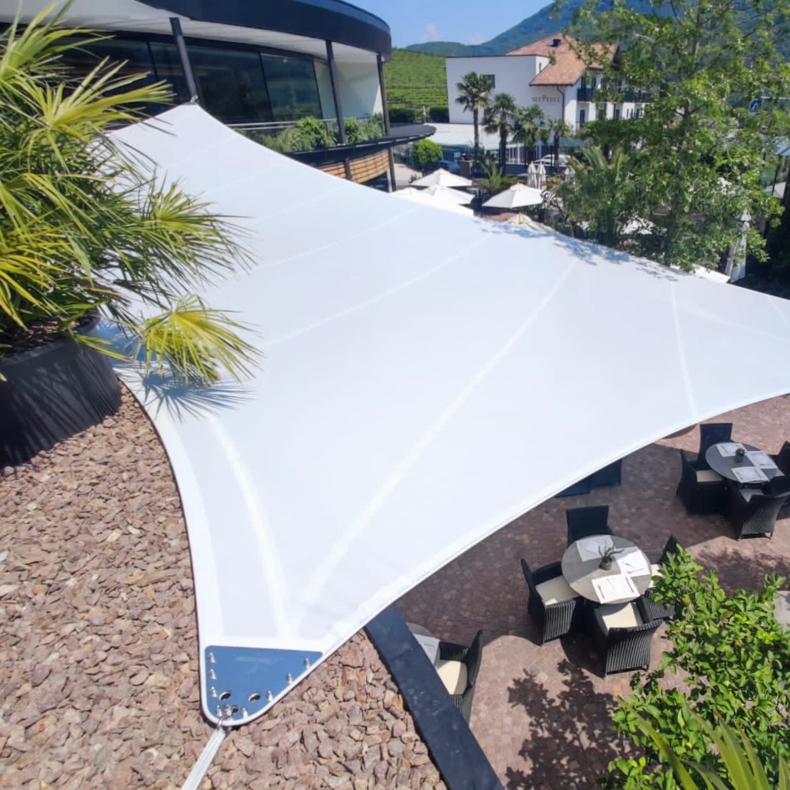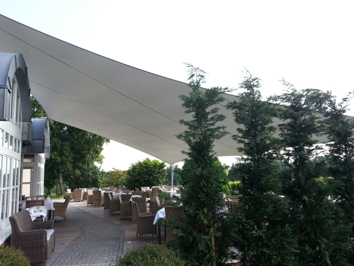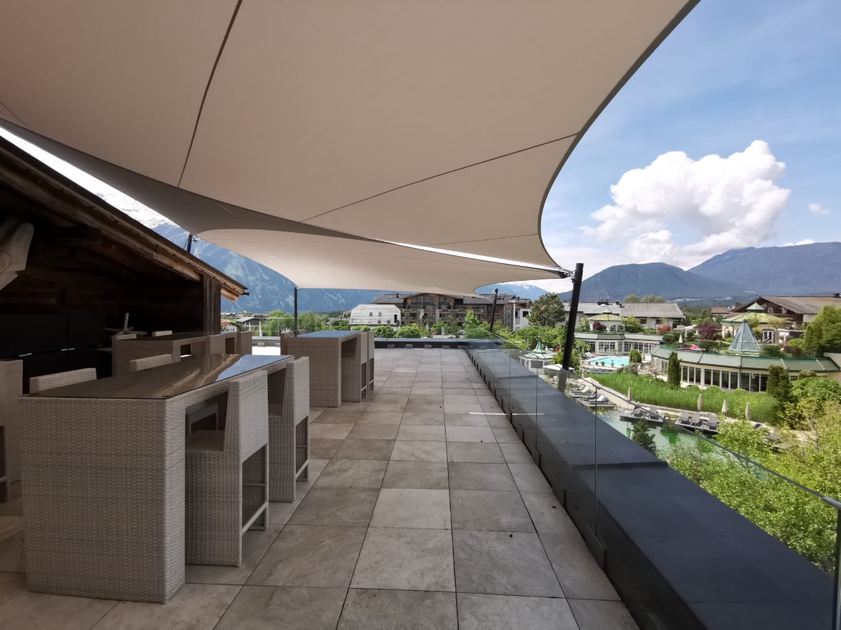 Von Beginn des Frühlings bis in den späten Herbst hinein sorgen die saisonale Sonnensegel für einen stabilen Sonnen- & Wetterschutz.