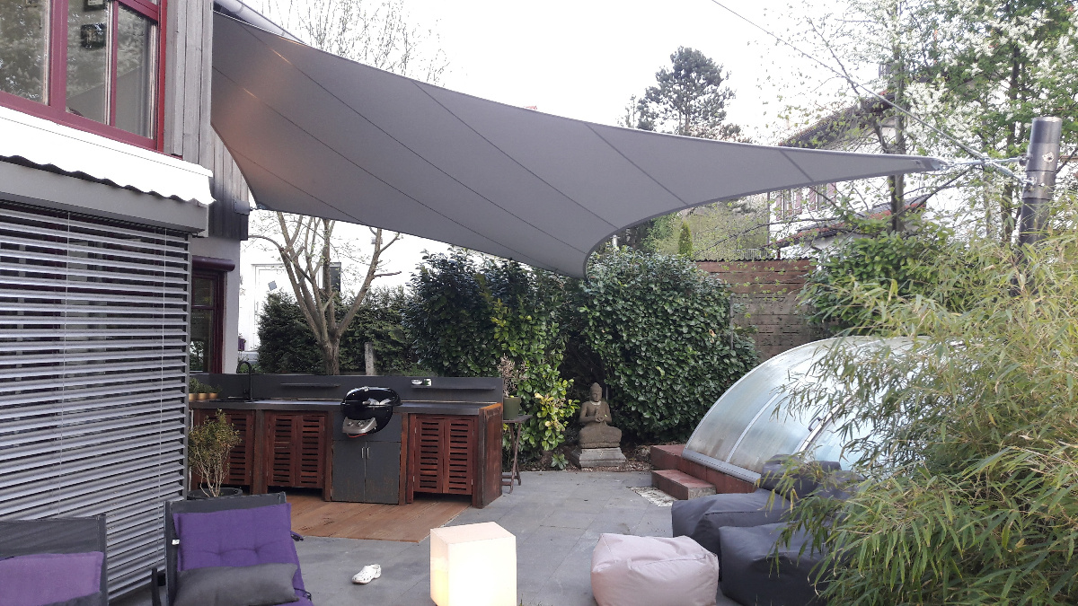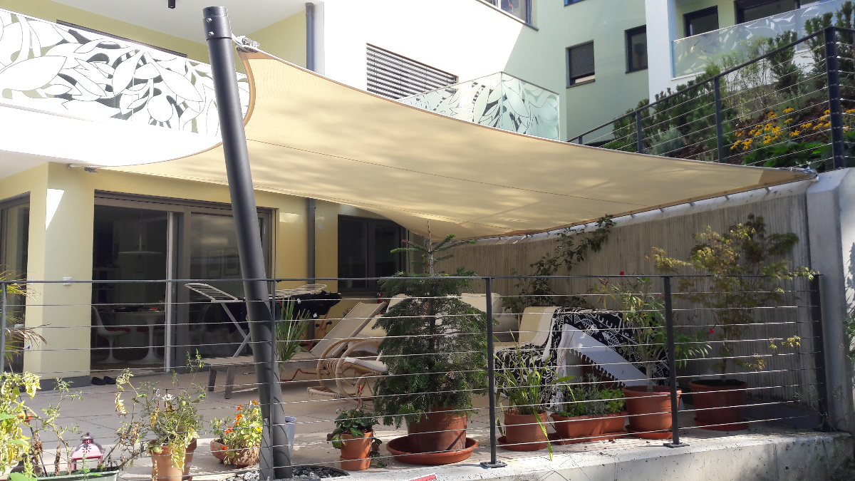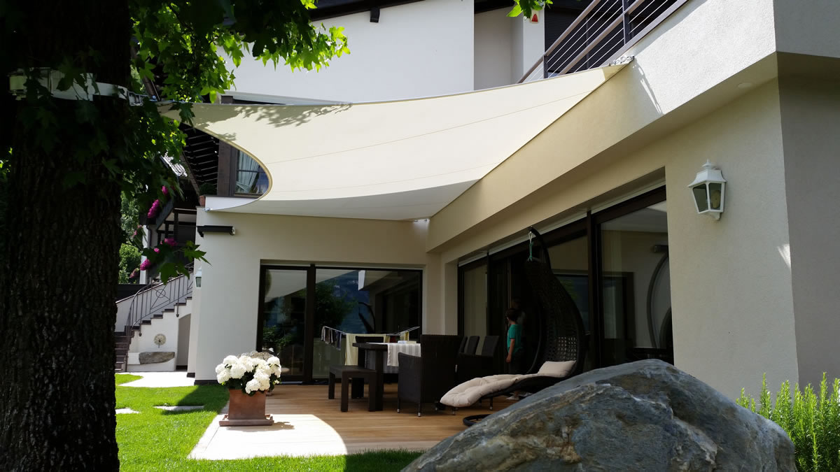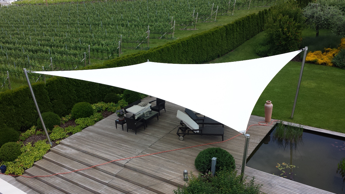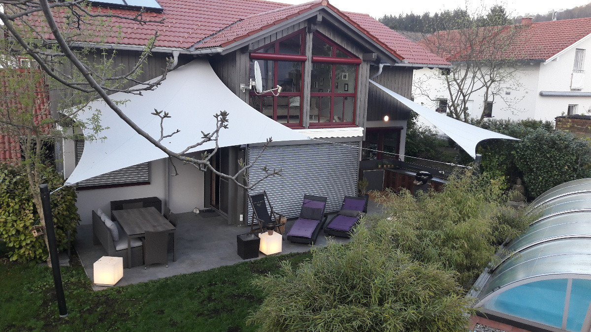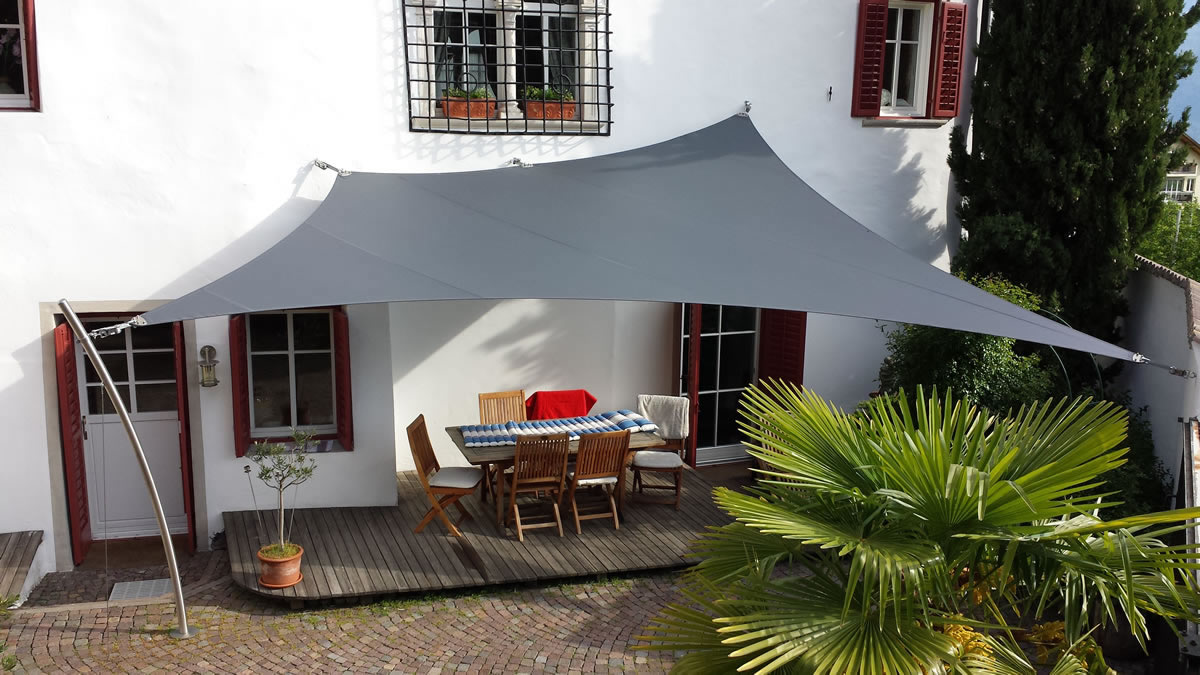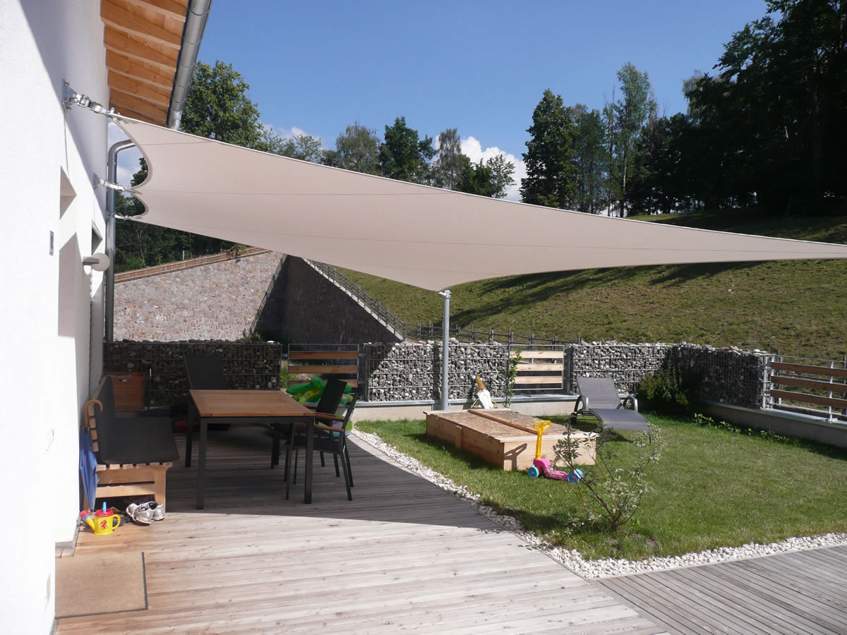 Egal ob Terrasse, Garten, freistehend als Pavillon-Lounge, Carport, Spielplätze, über dem Eingang oder zwischen bestehenden Strukturen - mit einem Sonnensegel kann fast jede Form gestaltet werden. Noch dazu ist es ein moderner ästhetischer Akzent der Ihnen eine neue Form von Schutz bietet.