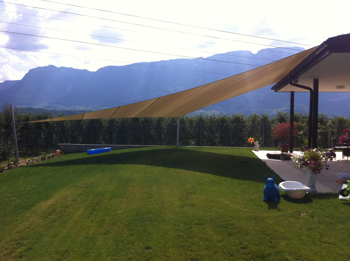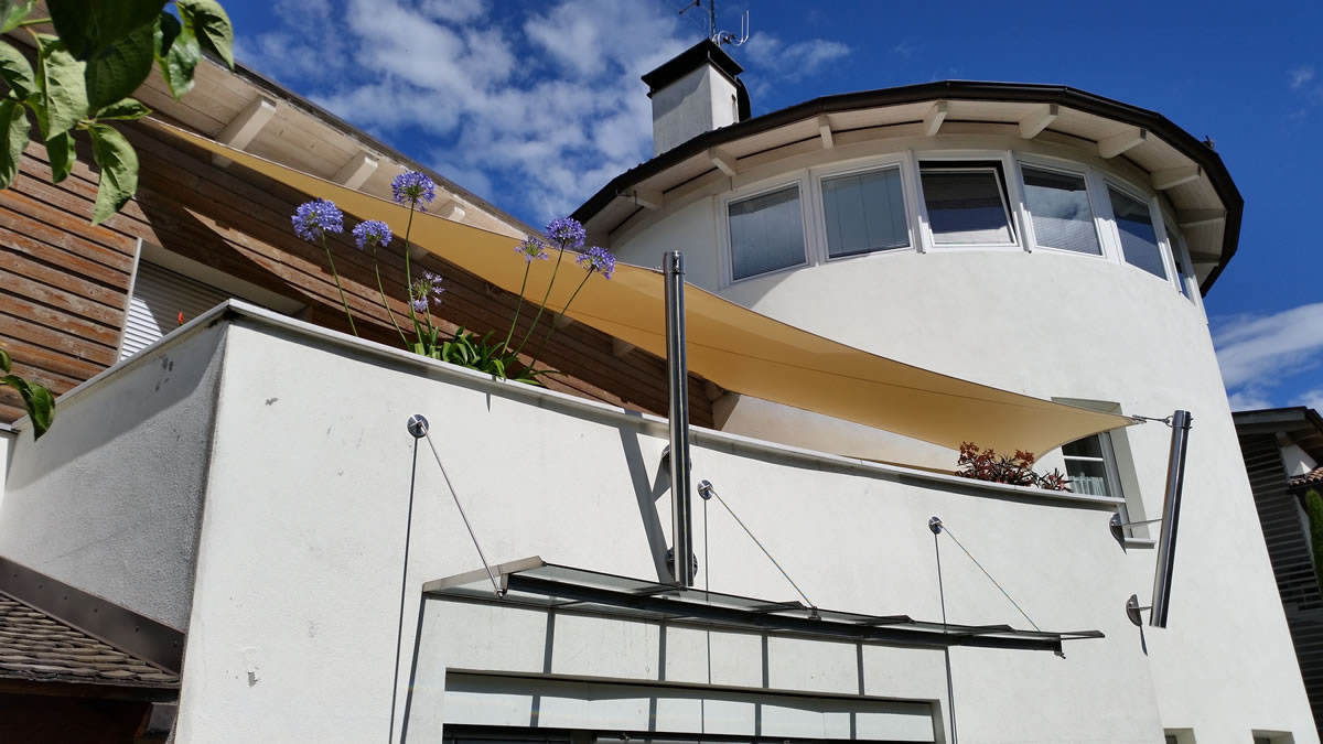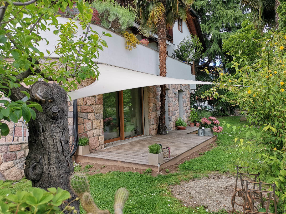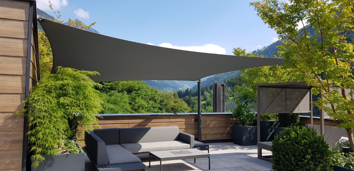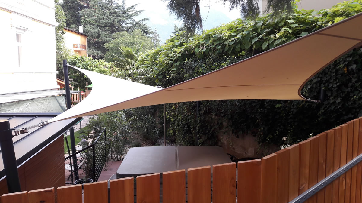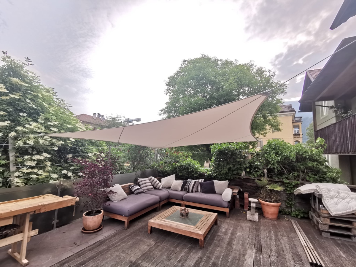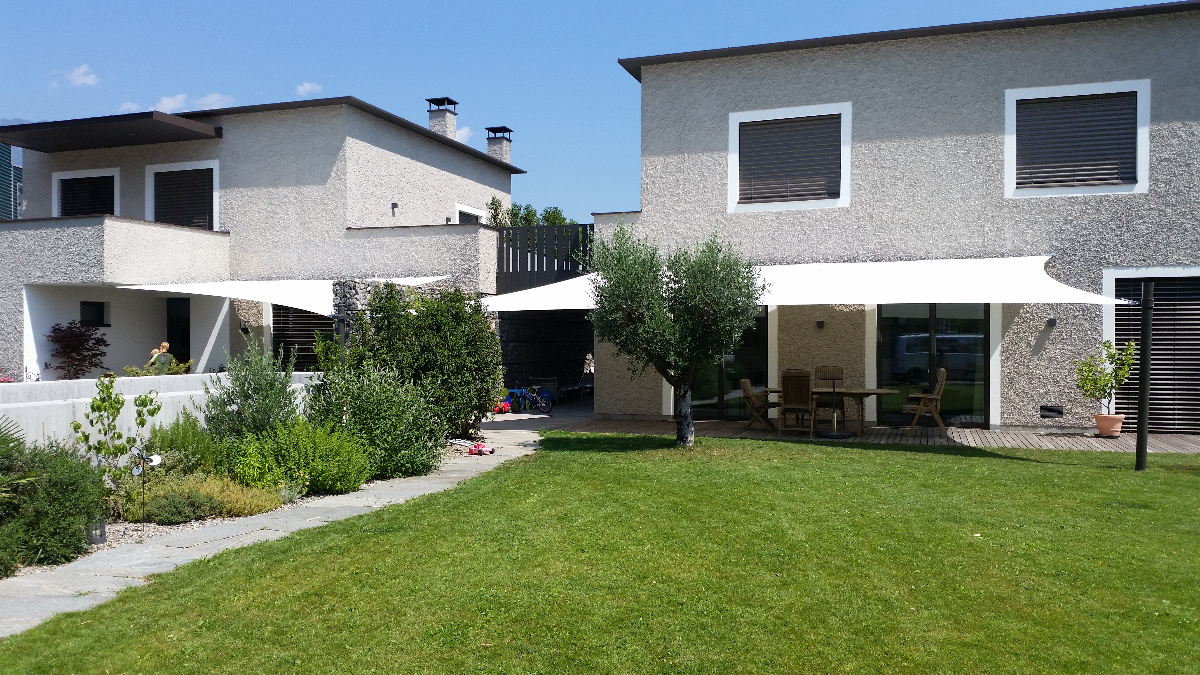 Egal ob Terrasse, Garten, freistehend als Pavillon-Lounge, Carport, Spielplätze, über dem Eingang oder zwischen bestehenden Strukturen - mit einem Sonnensegel kann fast jede Form gestaltet werden. Noch dazu ist es ein moderner ästhetischer Akzent der Ihnen eine neue Form von Schutz bietet.