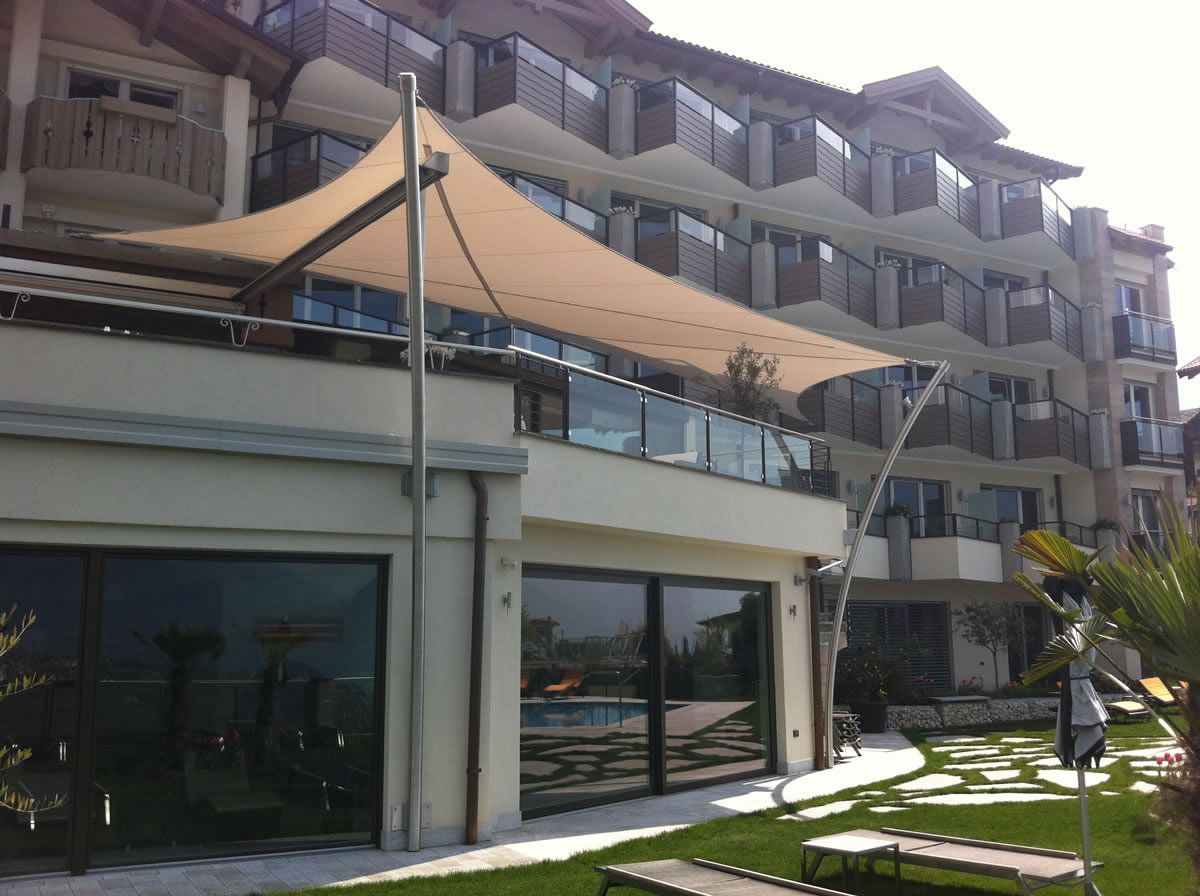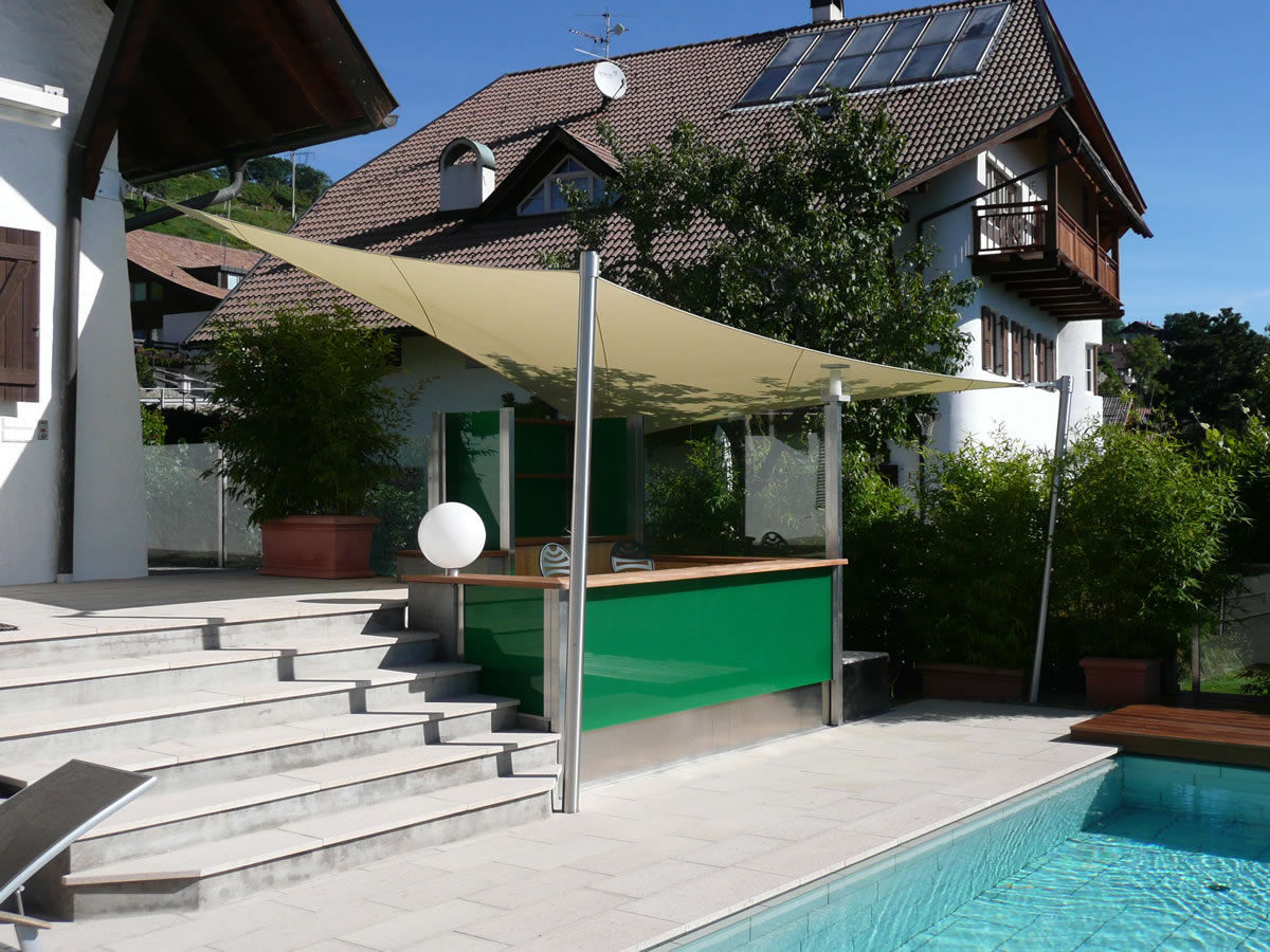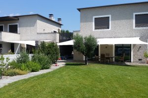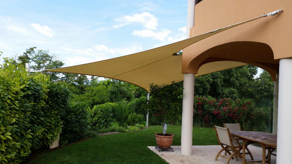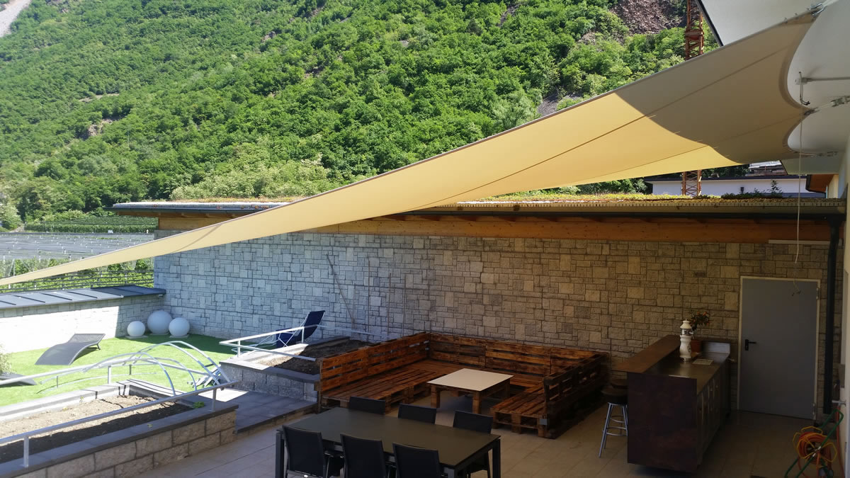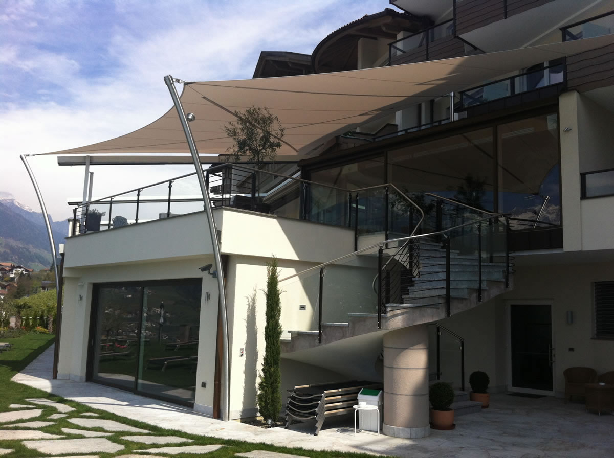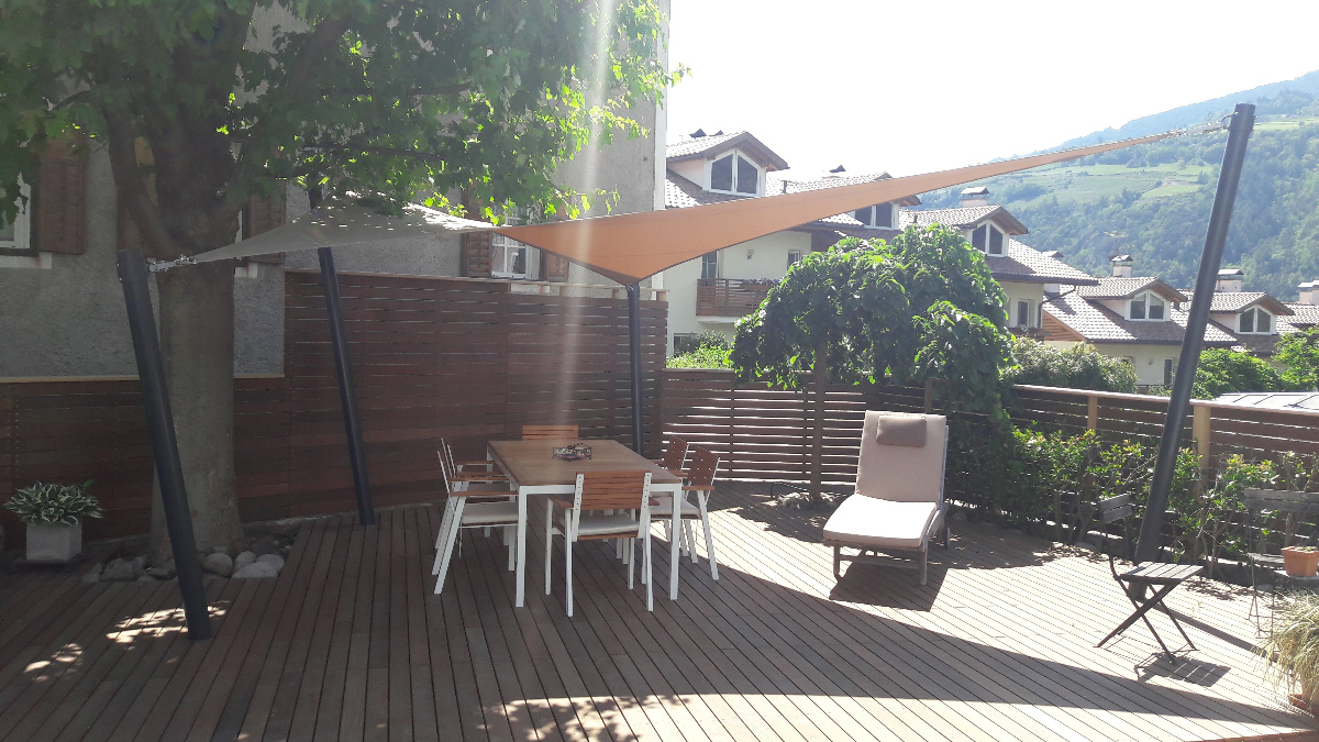 Egal ob Terrasse, Garten, freistehend als Pavillon-Lounge, Carport, Spielplätze, über dem Eingang oder zwischen bestehenden Strukturen - mit einem Sonnensegel kann fast jede Form gestaltet werden. Noch dazu ist es ein moderner ästhetischer Akzent der Ihnen eine neue Form von Schutz bietet.