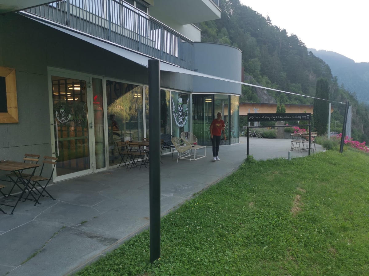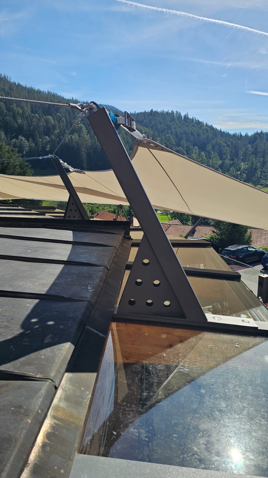 - umlaufendes Stahlseil und starke Verankerung