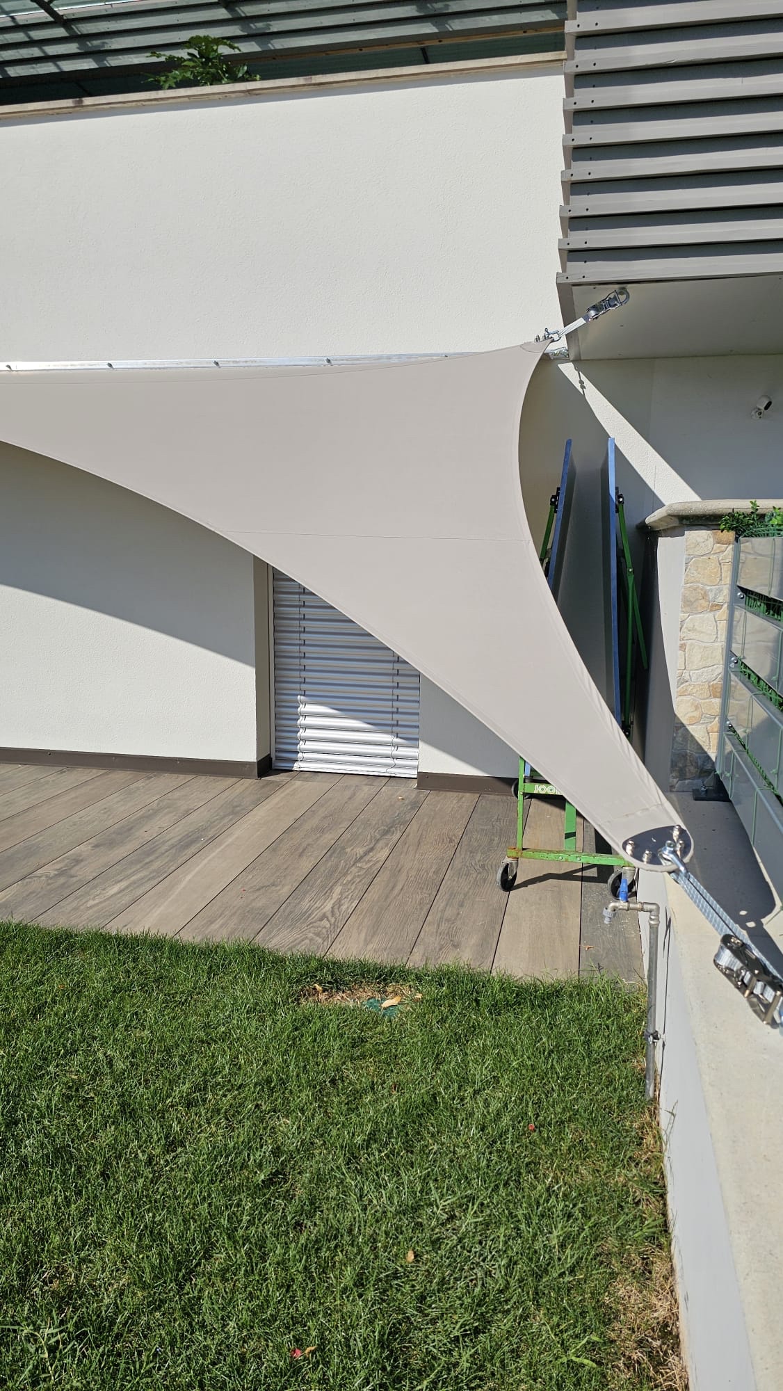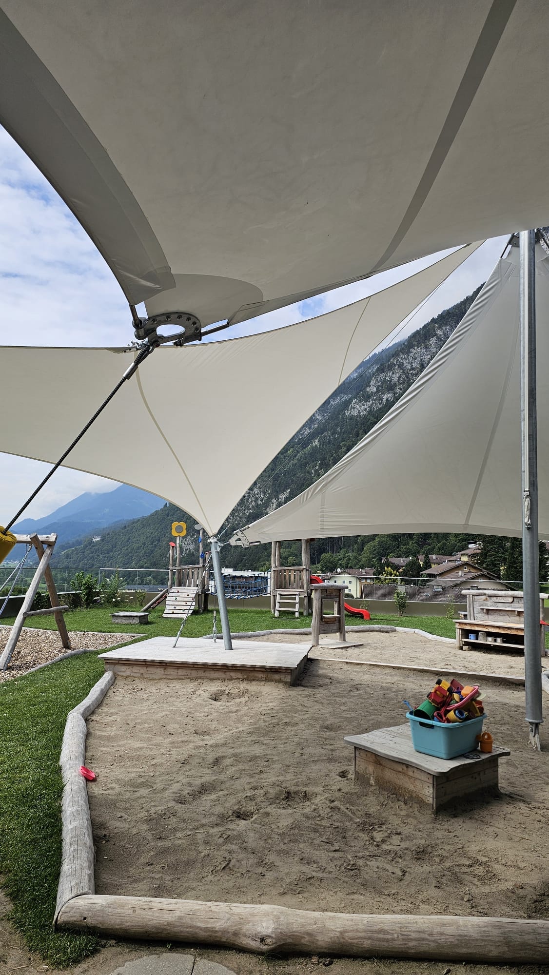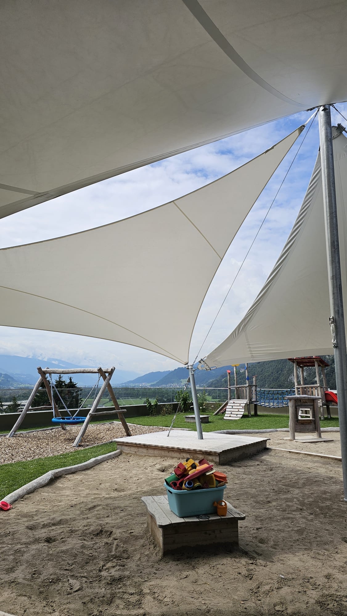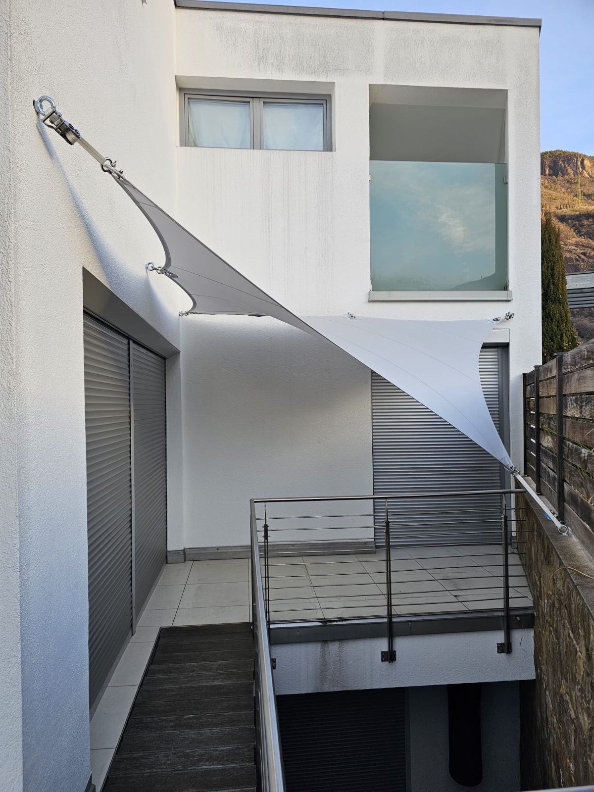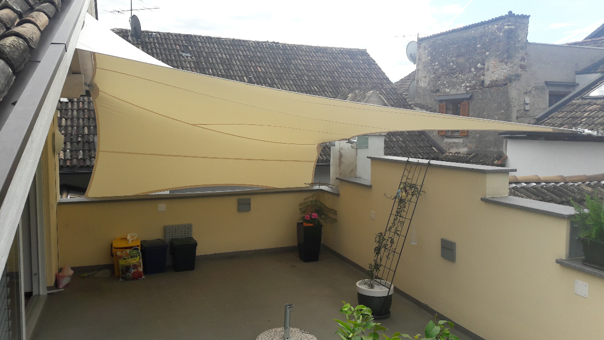 Sonnensegel-Anlagen für den ganzjährigen Einsatz bei Wind und Wetter. Textiler Mambranbau oder auch textile Architektur genannt. Dauerhafter Nutzen in Form architektonischer Highlights zur Beschattung, als Regen- und Schneeschutz. An oder auf Gebäuden oder freistehend als Solitair. In Gärten, als Vordach, als Carport oder sonst als Überdachung. Privat, gewerblich, in Kitas und für die Gastronomie.