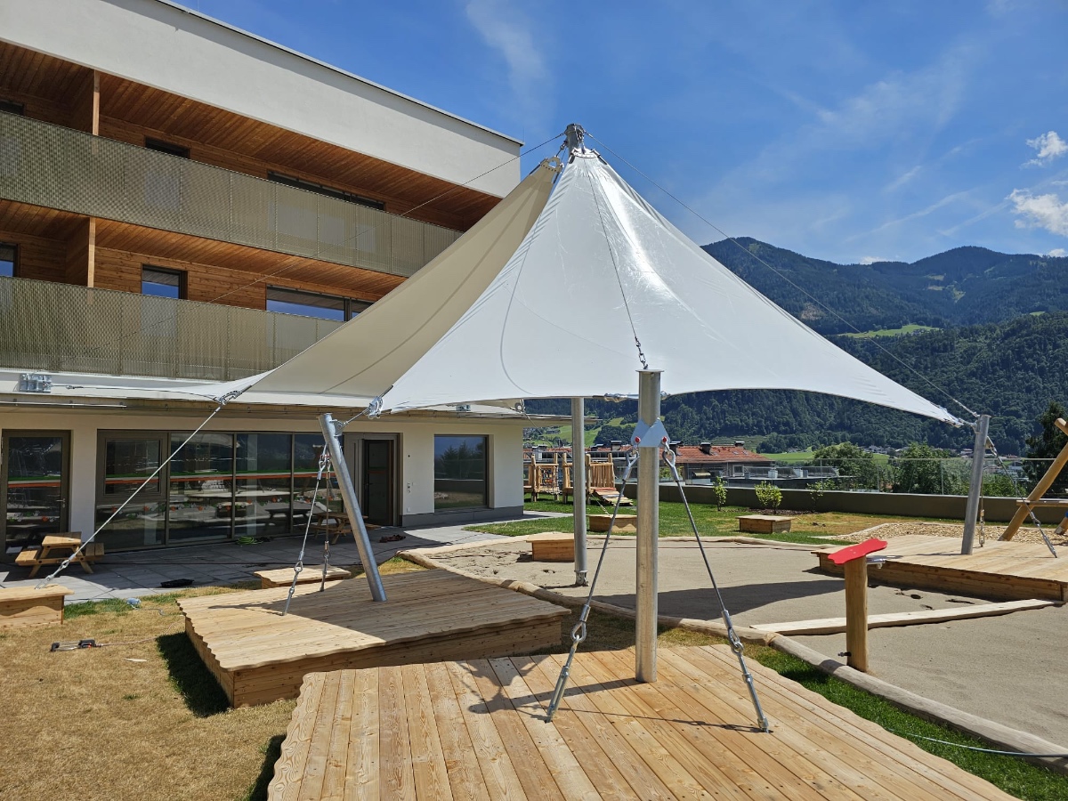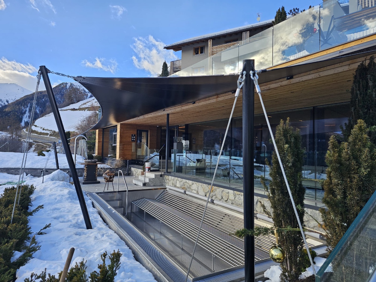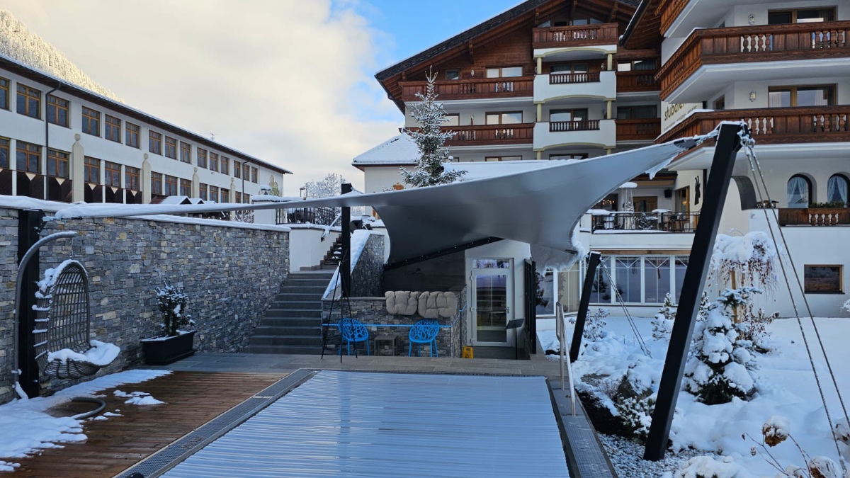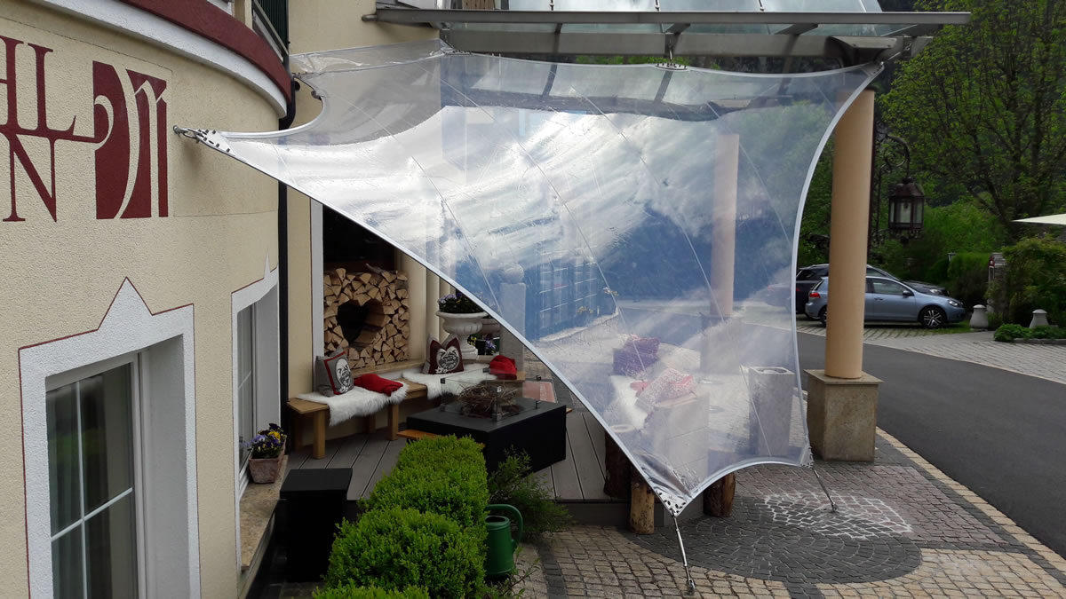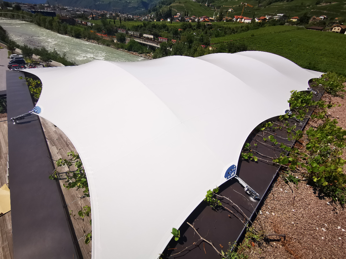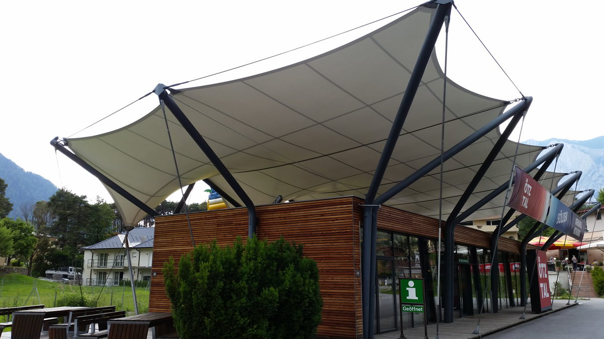 Diese hochwertigen Membrandächer werden individuell in Abstimmung mit dem Kunden unter Berücksichtigung der örtlichen Wind- und Schneelasten entwickelt und sind 365 Tage im Jahr im Einsatz. Durch die statische Berechnung werden die Ankerpunkte, Säulen und Segelkanten berechnet, die so auch hohe Schnee und Windlasten halten.
