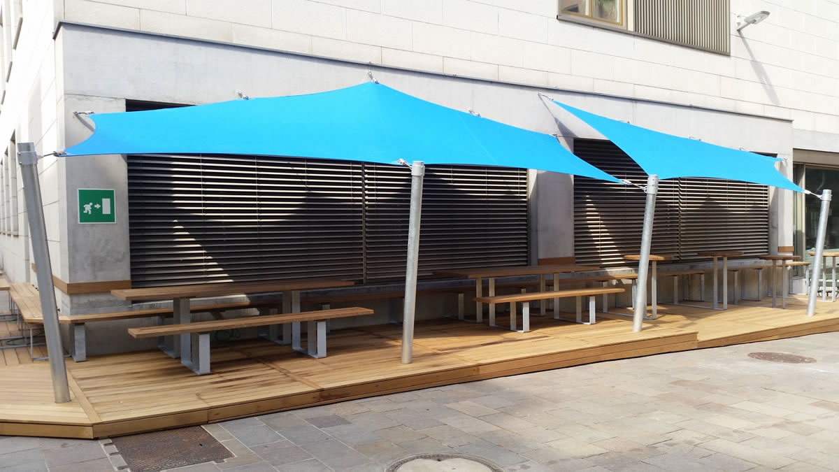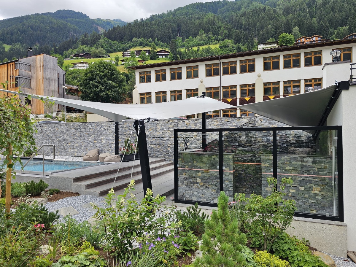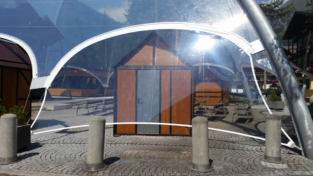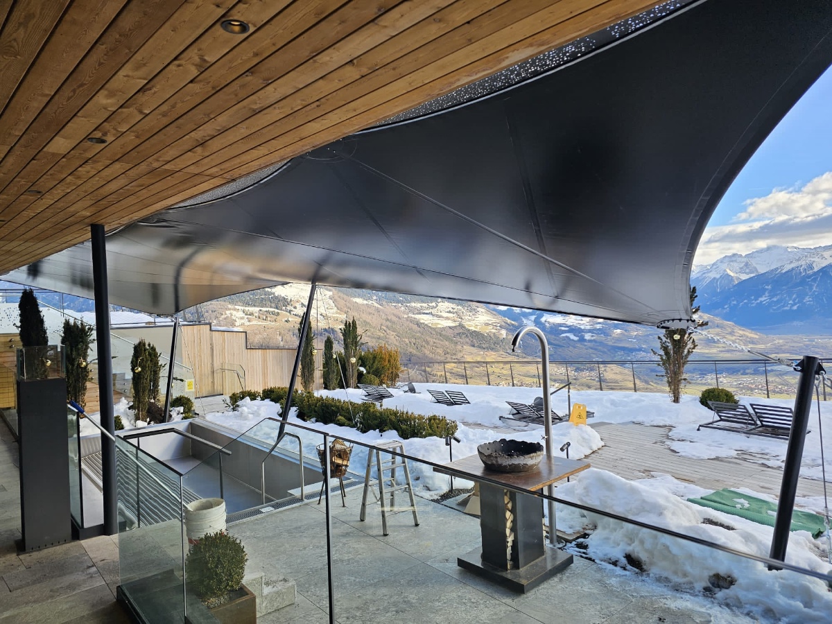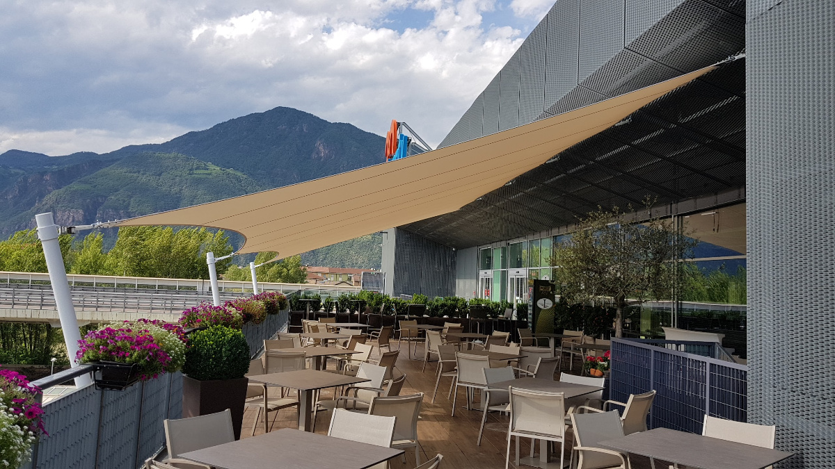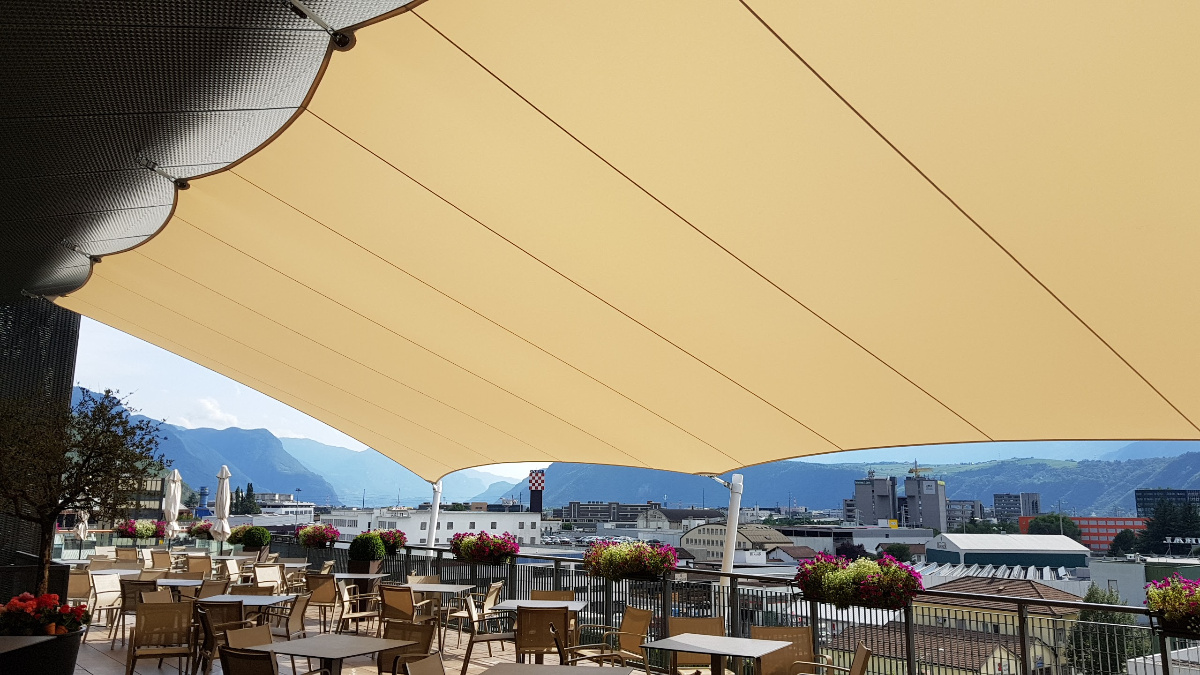 Diese hochwertigen Membrandächer werden individuell in Abstimmung mit dem Kunden unter Berücksichtigung der örtlichen Wind- und Schneelasten entwickelt und sind 365 Tage im Jahr im Einsatz. Durch die statische Berechnung werden die Ankerpunkte, Säulen und Segelkanten berechnet, die so auch hohe Schnee und Windlasten halten.
