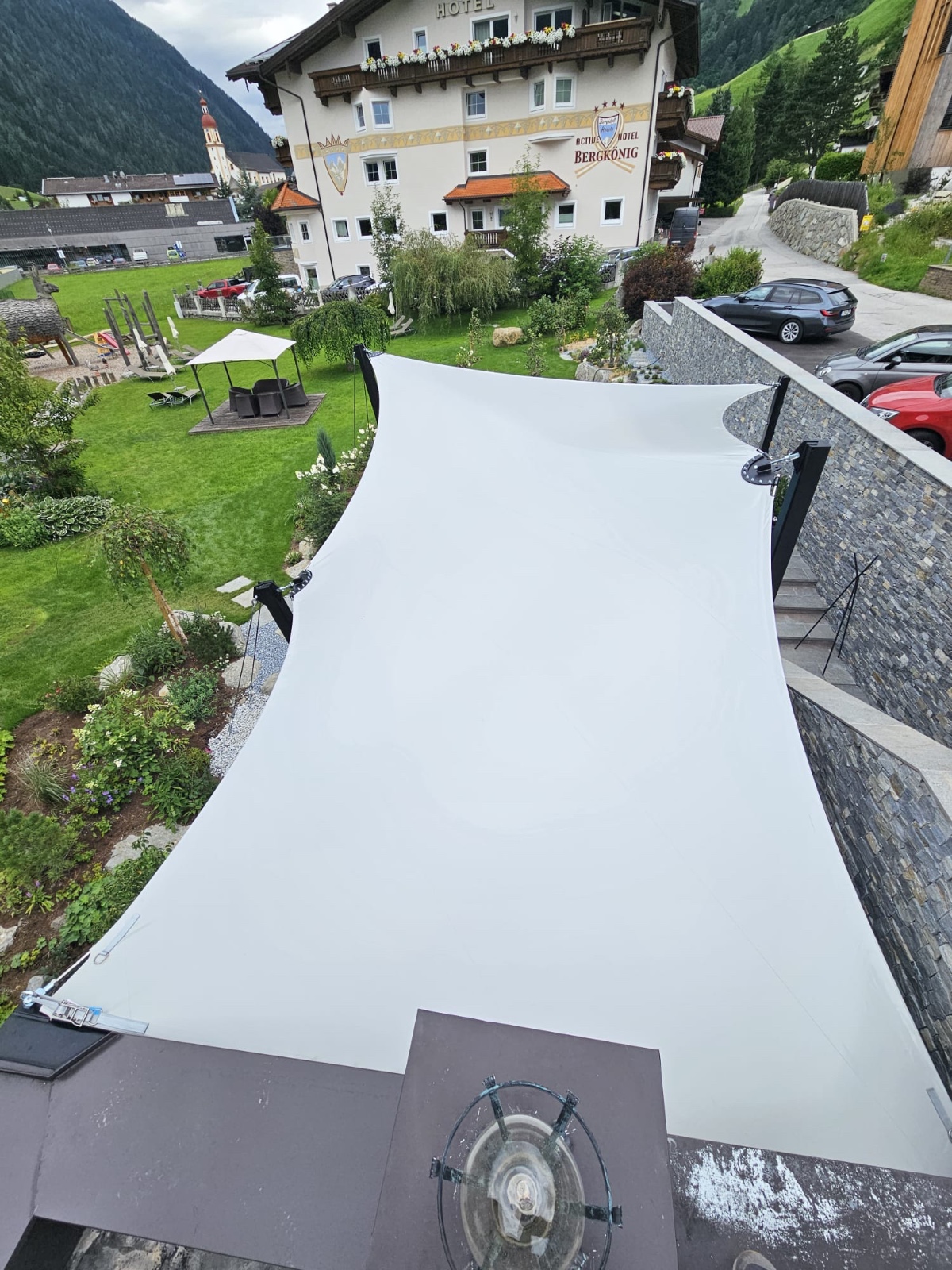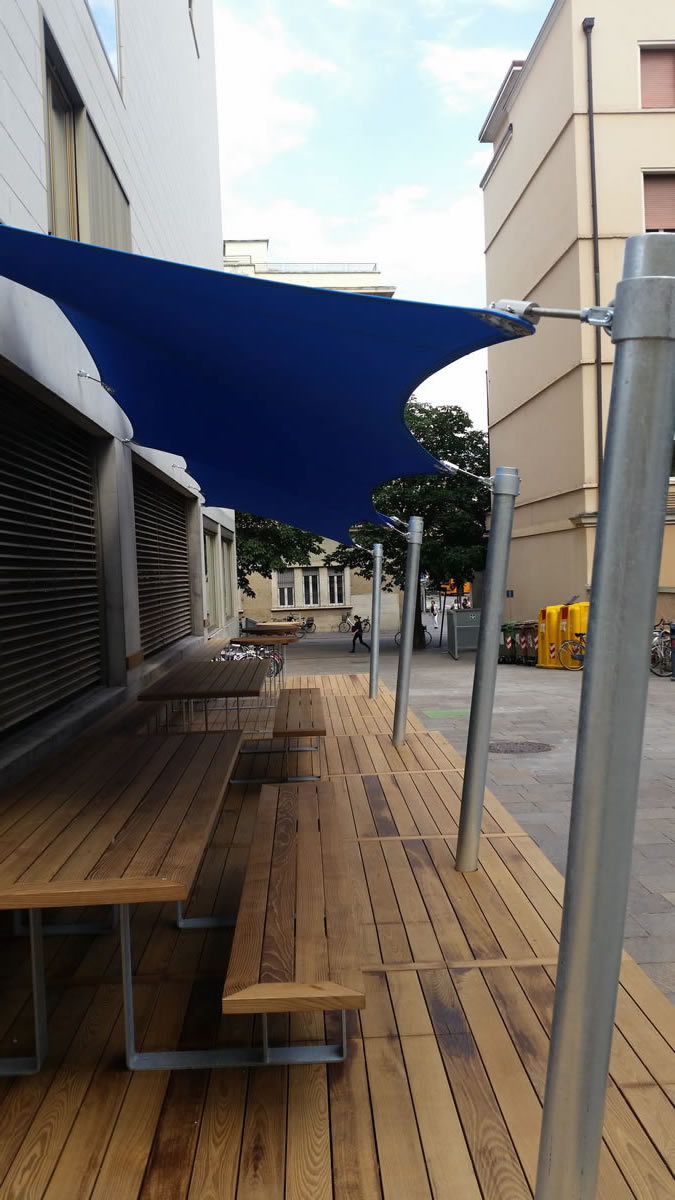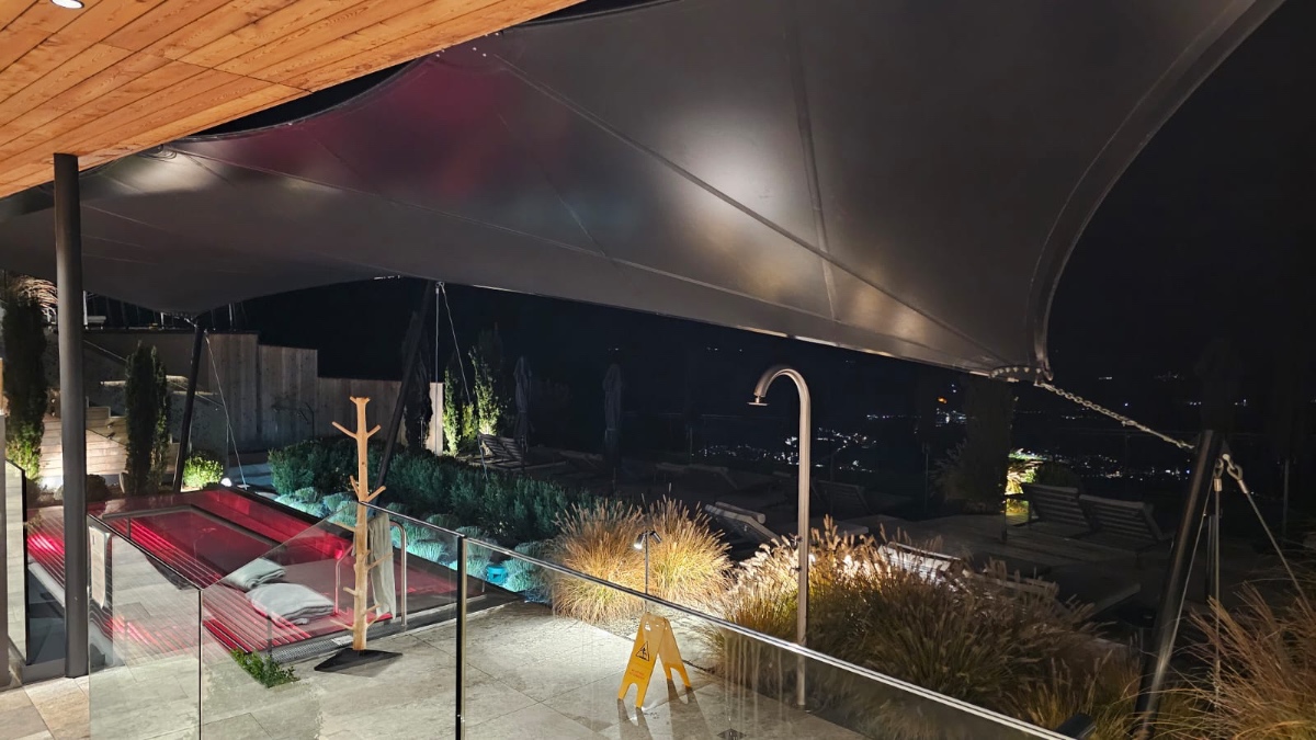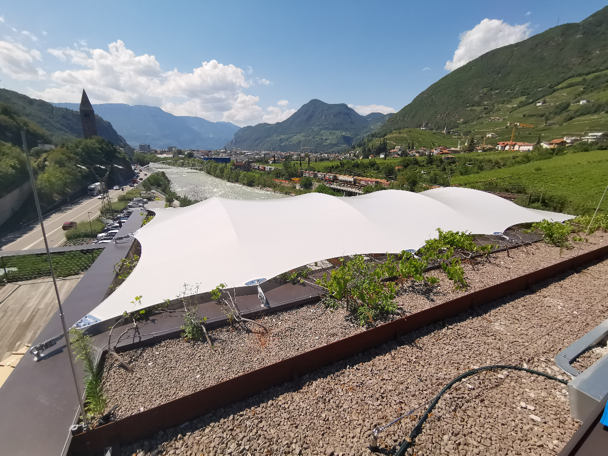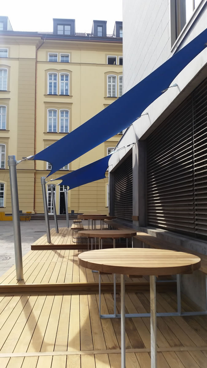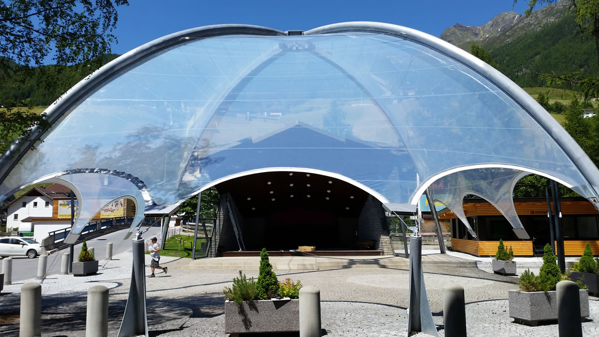 Diese hochwertigen Membrandächer werden individuell in Abstimmung mit dem Kunden unter Berücksichtigung der örtlichen Wind- und Schneelasten entwickelt und sind 365 Tage im Jahr im Einsatz. Durch die statische Berechnung werden die Ankerpunkte, Säulen und Segelkanten berechnet, die so auch hohe Schnee und Windlasten halten.