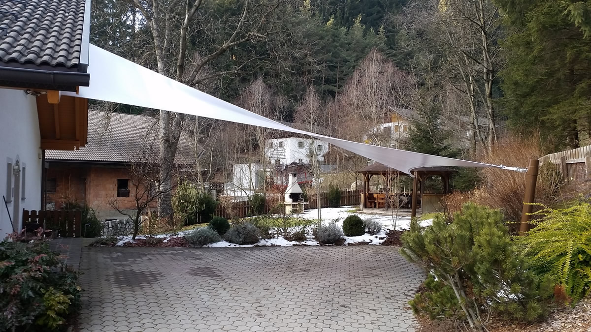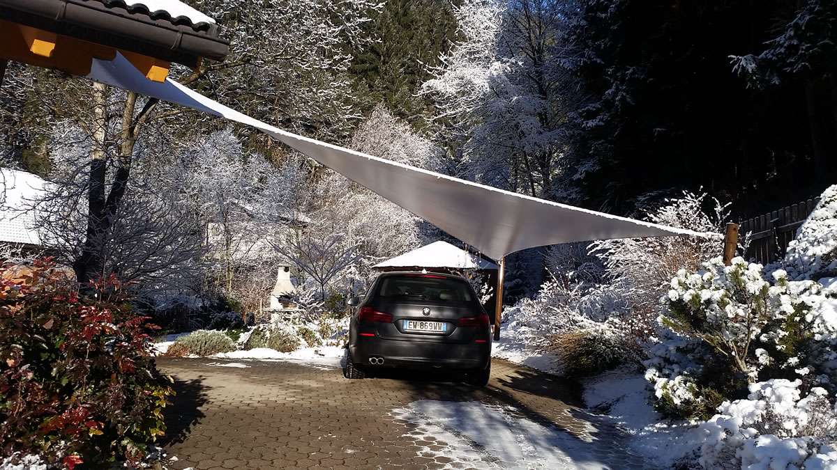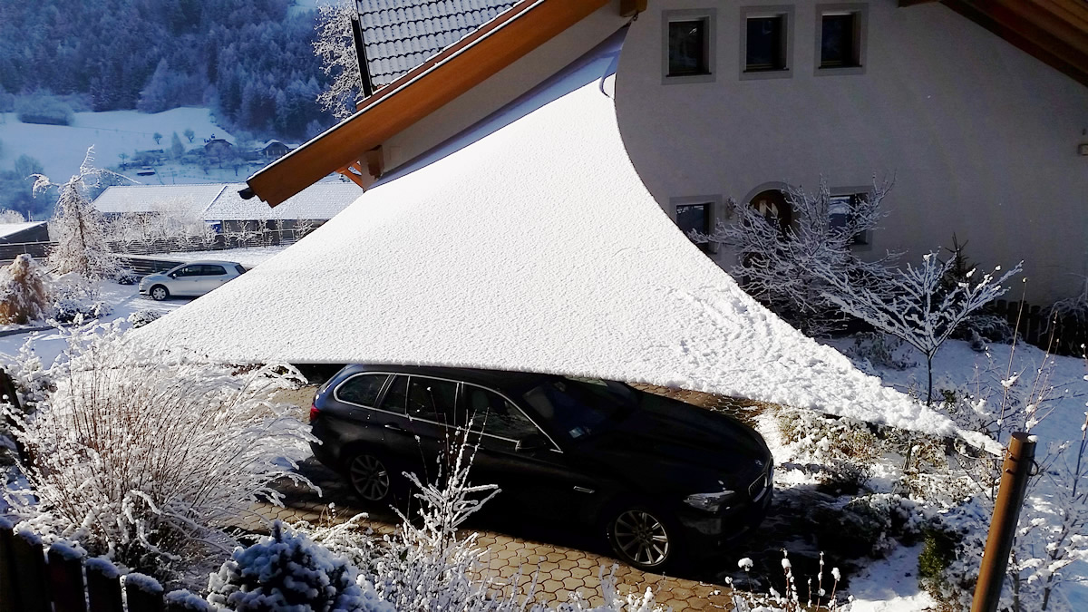 Ganzjahressegel sind die einzigen Wetterschutz- & Sonnensegel, die auch bei Sturm, Schnee und Eis genutzt werden können.